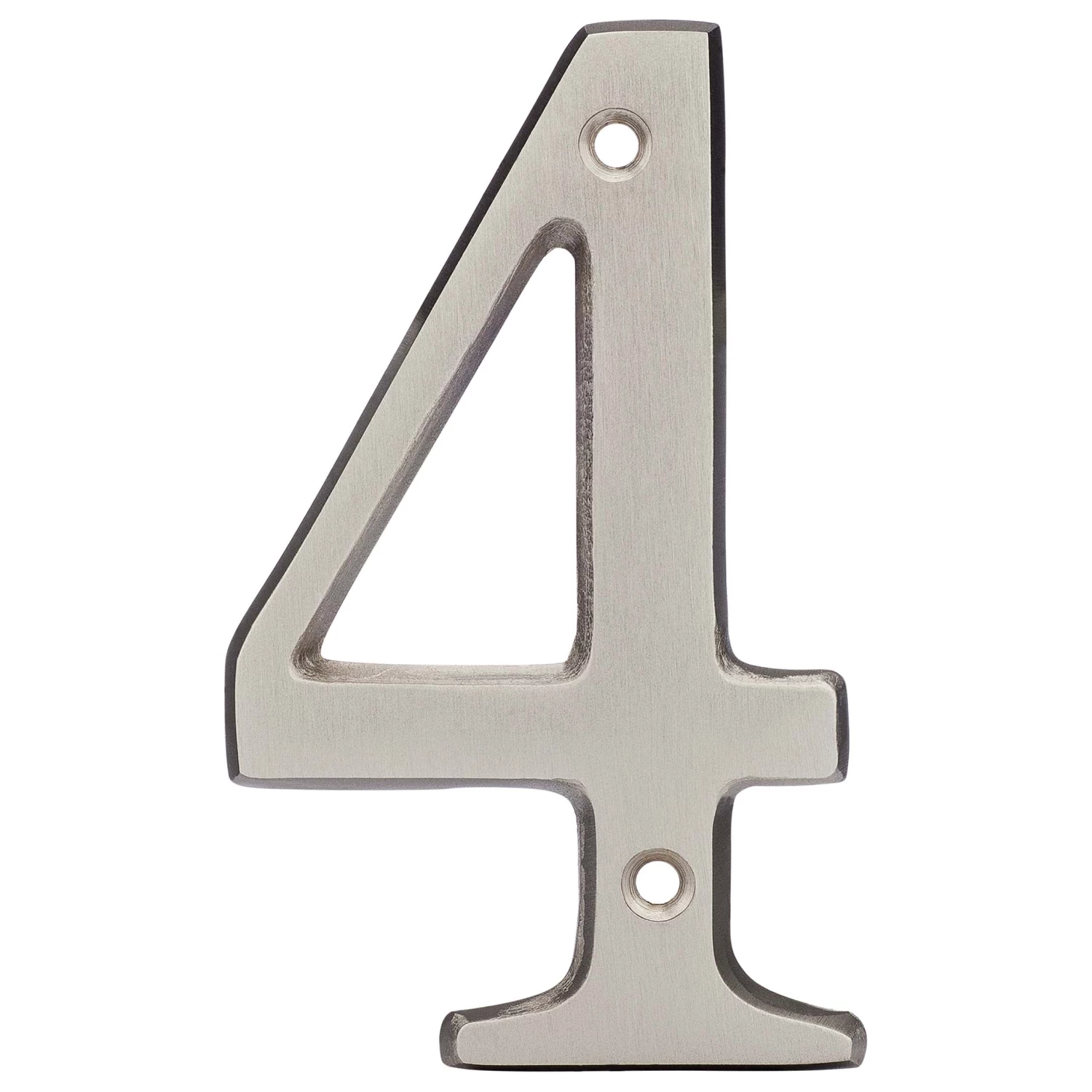 Number Is 4 Inches High; Individually Packaged With Mounting Screws; Fabricated With Brass; Satin Nickel Finish.