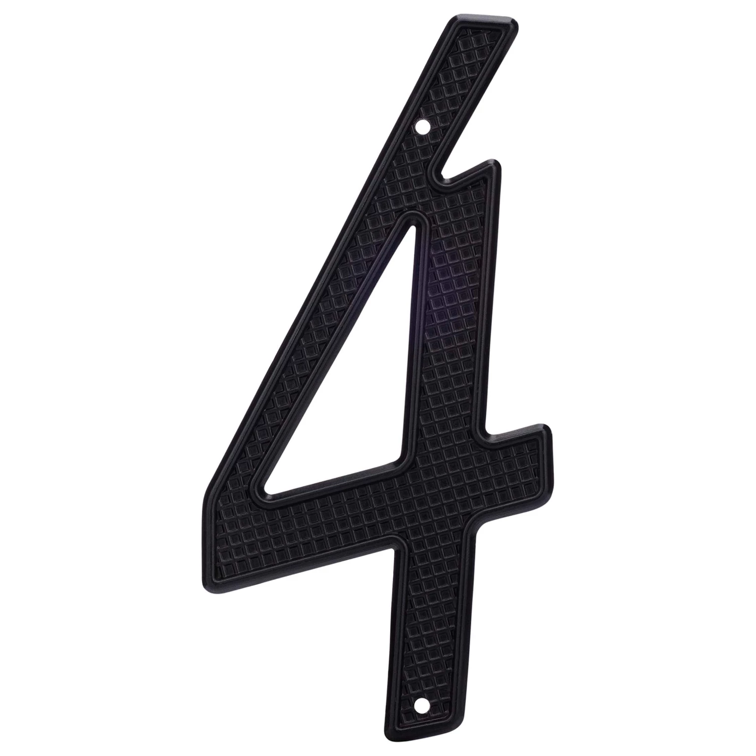 Number Is 4 Inches High; Individually Packaged With Mounting Screws; Fabricated With Die Cast Zinc; Black Finish.