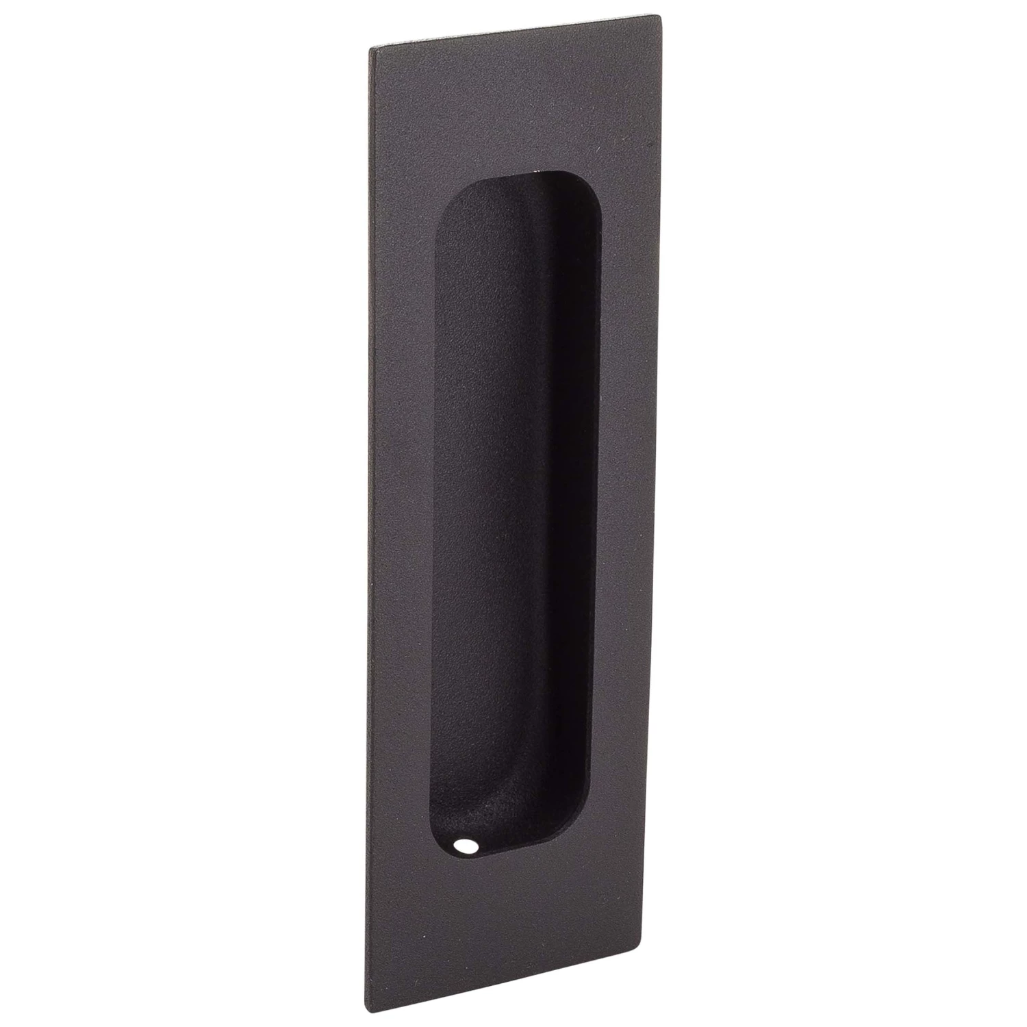 Recessed Rectangle Pull For Barn Doors; 4 3/4 Inches Long X 1 9/16 Inches Wide X 1/2 Inches Deep; Fabricated With Aluminum; Matte Black Finish.