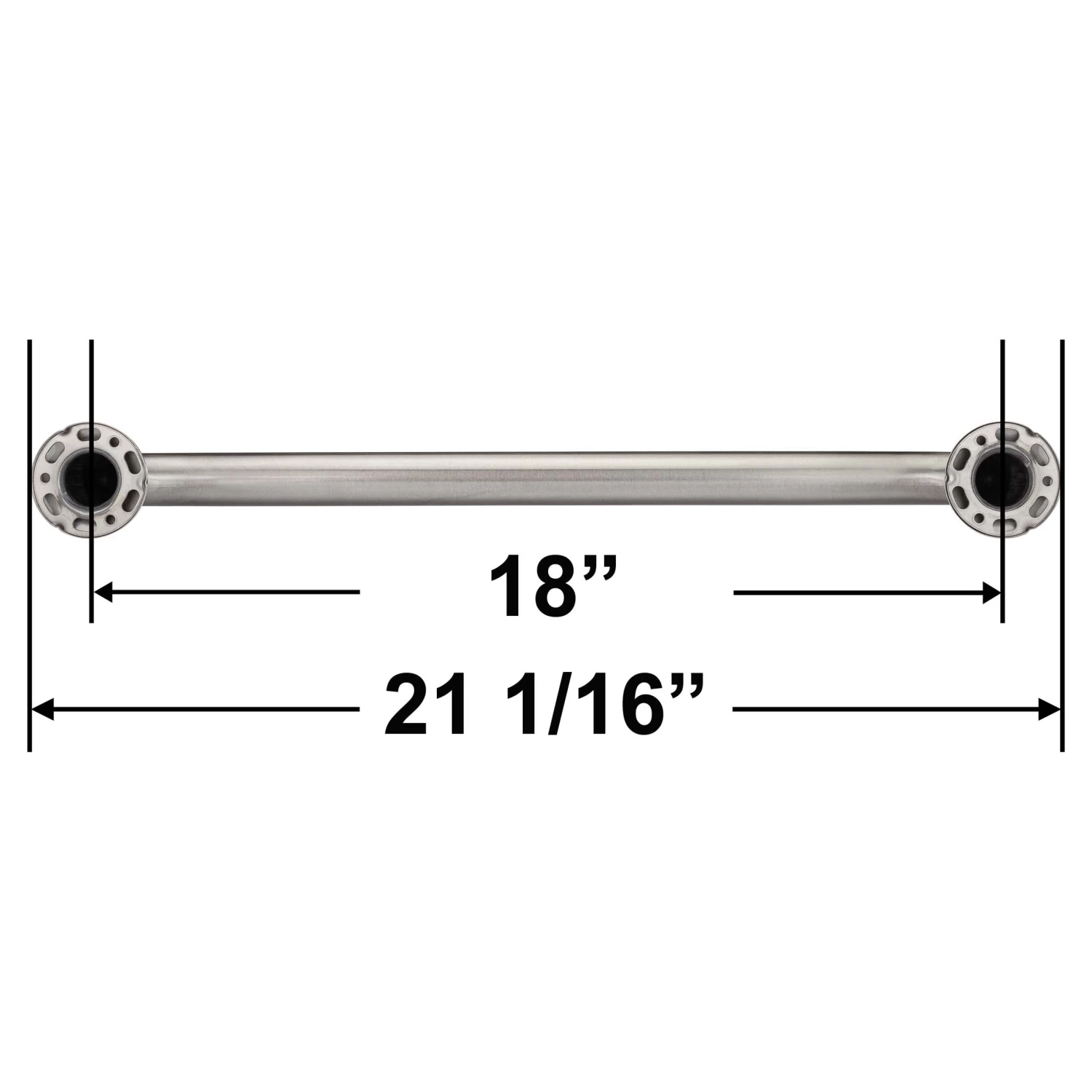 21 1/16 Inches Overall Length; 18 Inches Long Measured Center To Center Of Mounting Brackets; 1 1/2 Inch Diameter, 18 Gauge Tube; ADA Compliant When Properly Installed Into Wall Studs; Ships With Stainless Steel Mounting Bolts; Install Grab Bars In Minutes With Harney Hardware Grab Bar Mounting Brackets (Product #71832 Sold Separately. Please Read Product Limitations Before Use.); Fabricated With Stainless Steel; Satin Stainless Steel Finish.