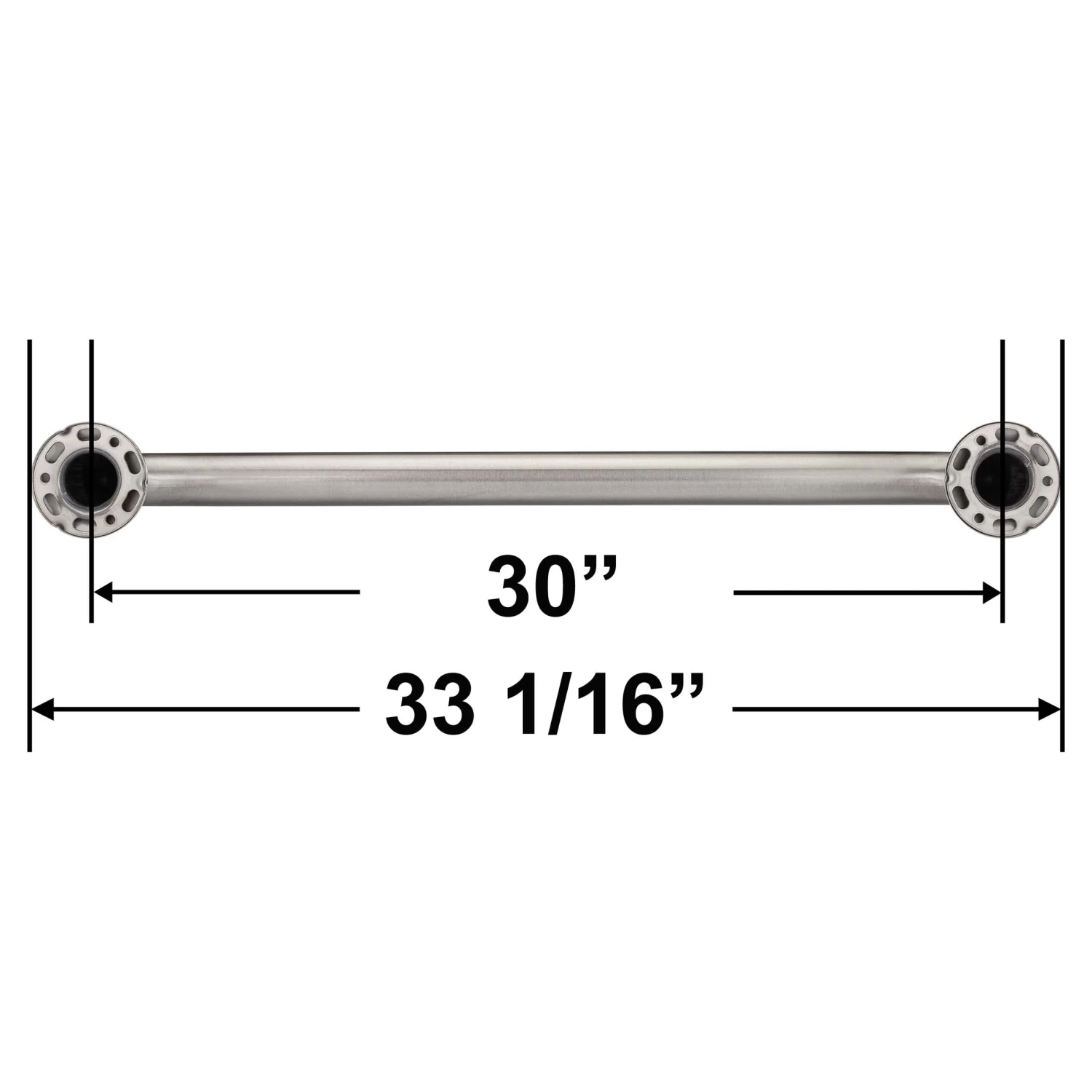 33 1/6 Inches Overall Length; 30 Inches Long Measured Center To Center Of Mounting Brackets; 1 1/2 Inch Diameter, 18 Gauge Tube; ADA Compliant When Properly Installed Into Wall Studs; Ships With Stainless Steel Mounting Bolts; Install Grab Bars In Minutes With Harney Hardware Grab Bar Mounting Brackets (Product #71832 Sold Separately. Please Read Product Limitations Before Use.); Fabricated With Stainless Steel; Satin Stainless Steel Finish.