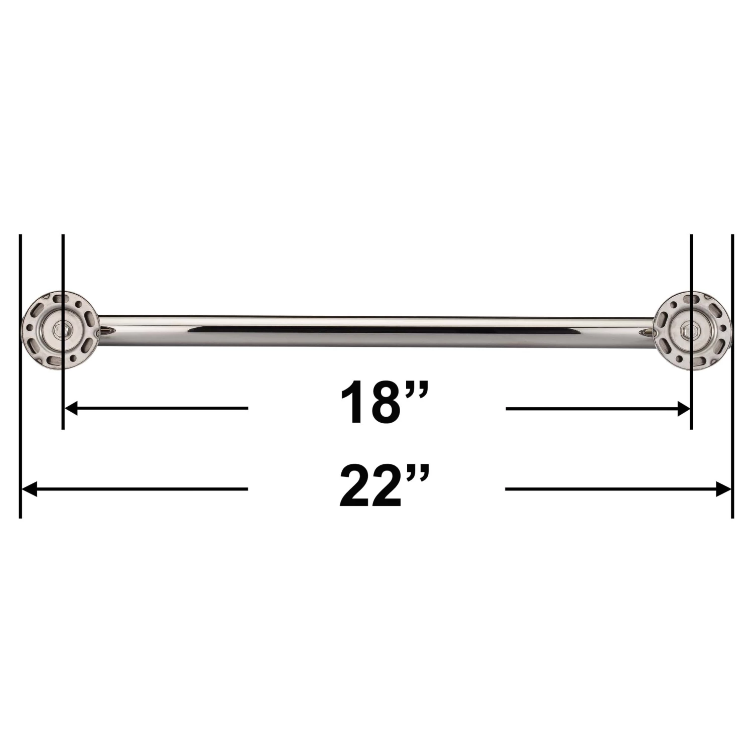 22 Inches Overall Length; 18 Inches Long Measured Center To Center Of Mounting Brackets; 1 1/4 Inch Diameter, 18 Gauge Tube; ADA Compliant When Properly Installed Into Wall Studs; Ships With Stainless Steel Mounting Bolts; Install Grab Bars In Minutes With Harney Hardware Grab Bar Mounting Brackets ( Product #71831 Sold Separately. Please Read Product Limitations Before Use.); Fabricated With Stainless Steel; Polished Stainless Steel Finish.