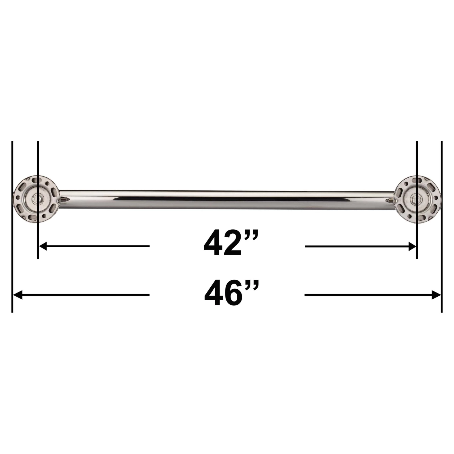 46 Inches Overall Length; 42 Inches Long Measured Center To Center Of Mounting Brackets; 1 1/4 Inch Diameter, 18 Gauge Tube; ADA Compliant When Properly Installed Into Wall Studs; Ships With Stainless Steel Mounting Bolts; Install Grab Bars In Minutes With Harney Hardware Grab Bar Mounting Brackets ( Product #71831 Sold Separately. Please Read Product Limitations Before Use.); Fabricated With Stainless Steel; Polished Stainless Steel Finish.