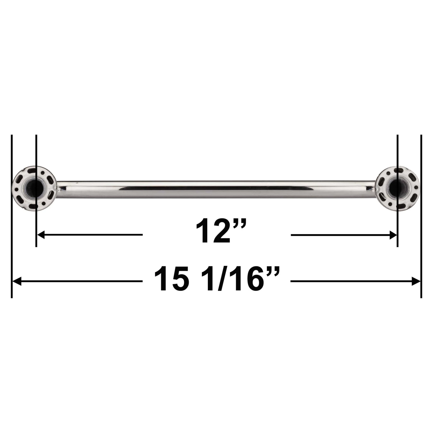 15 1/16 Inches Overall Length; 12 Inches Long Measured Center To Center Of Mounting Brackets; 1 1/4 Inch Diameter, 18 Gauge Tube; ADA Compliant When Properly Installed Into Wall Studs; Ships With Stainless Steel Mounting Bolts; Install Grab Bars In Minutes With Harney Hardware Grab Bar Mounting Brackets ( Product #71831 Sold Separately. Please Read Product Limitations Before Use.); Fabricated With Stainless Steel; Polished Stainless Steel Finish.