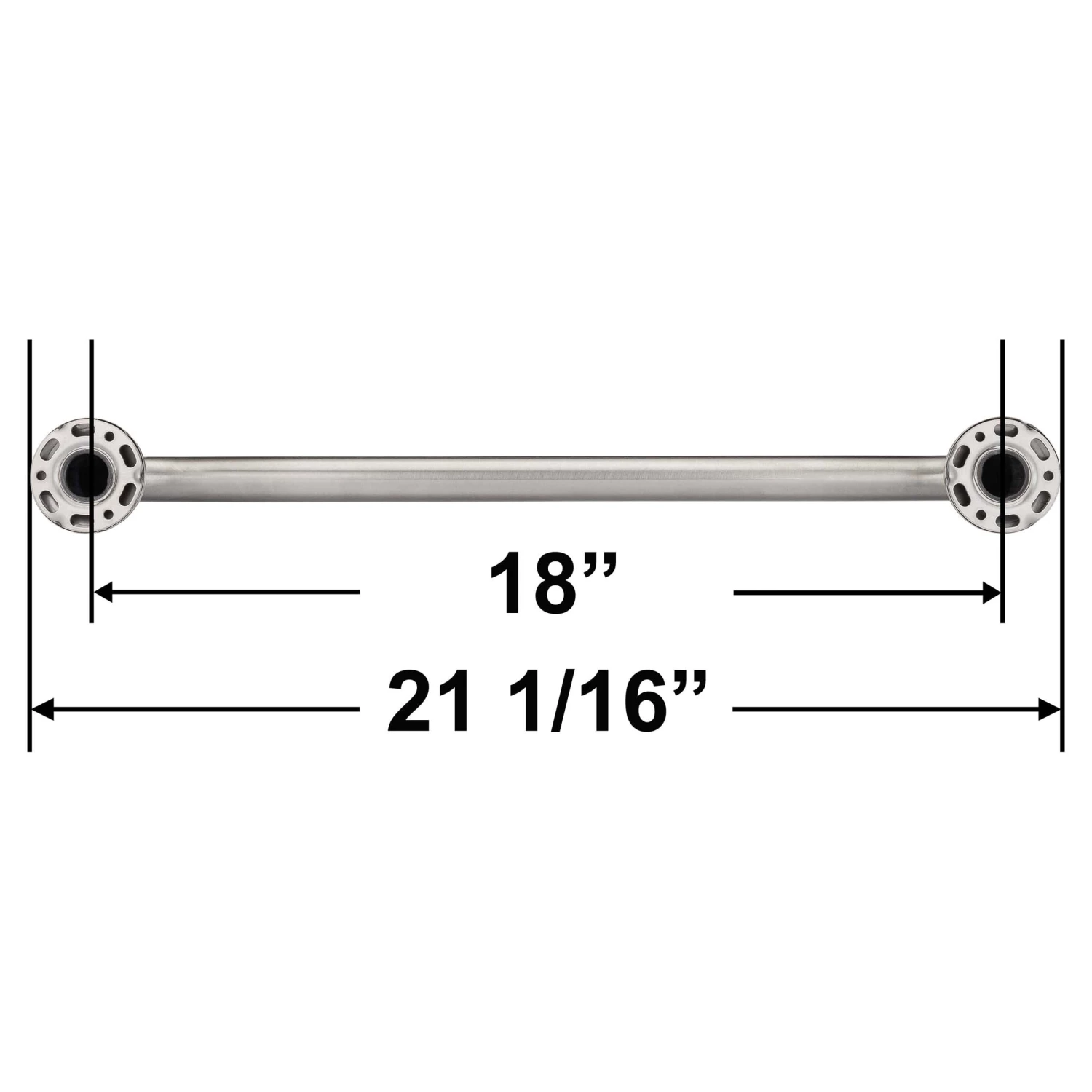 21 1/16 Inches Overall Length; 18 Inches Long Measured Center To Center Of Mounting Brackets; 1 1/4 Inch Diameter, 18 Gauge Tube; ADA Compliant When Properly Installed Into Wall Studs; Ships With Stainless Steel Mounting Bolts; Install Grab Bars In Minutes With Harney Hardware Grab Bar Mounting Brackets ( Product #71832 Sold Separately. Please Read Product Limitations Before Use.); Fabricated With Stainless Steel; Satin Stainless Steel Finish.