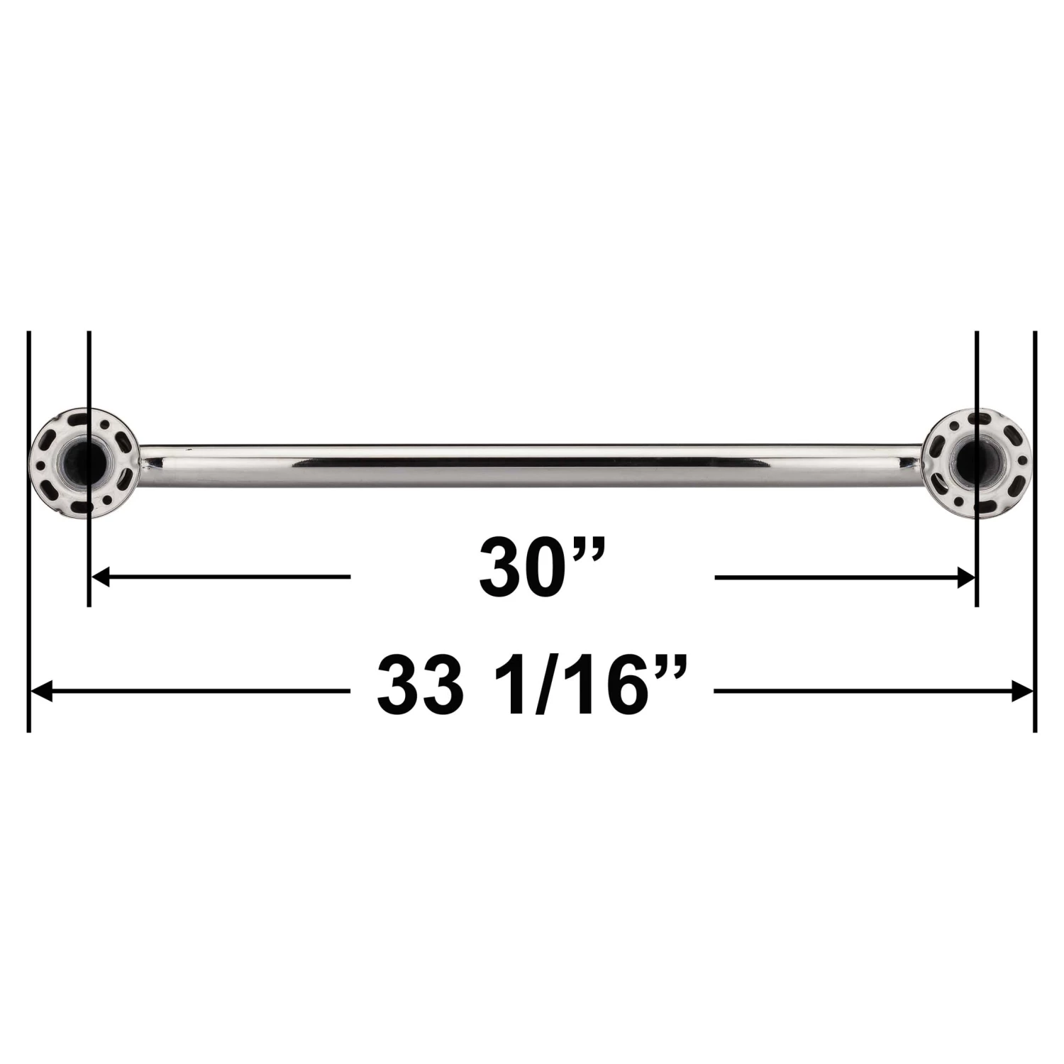 33 1/16 Inches Overall Length; 30 Inches Long Measured Center To Center Of Mounting Brackets; 1 1/4 Inch Diameter, 18 Gauge Tube; ADA Compliant When Properly Installed Into Wall Studs; Ships With Stainless Steel Mounting Bolts; Install Grab Bars In Minutes With Harney Hardware Grab Bar Mounting Brackets ( Product #71831 Sold Separately. Please Read Product Limitations Before Use.); Fabricated With Stainless Steel; Polished Stainless Steel Finish.