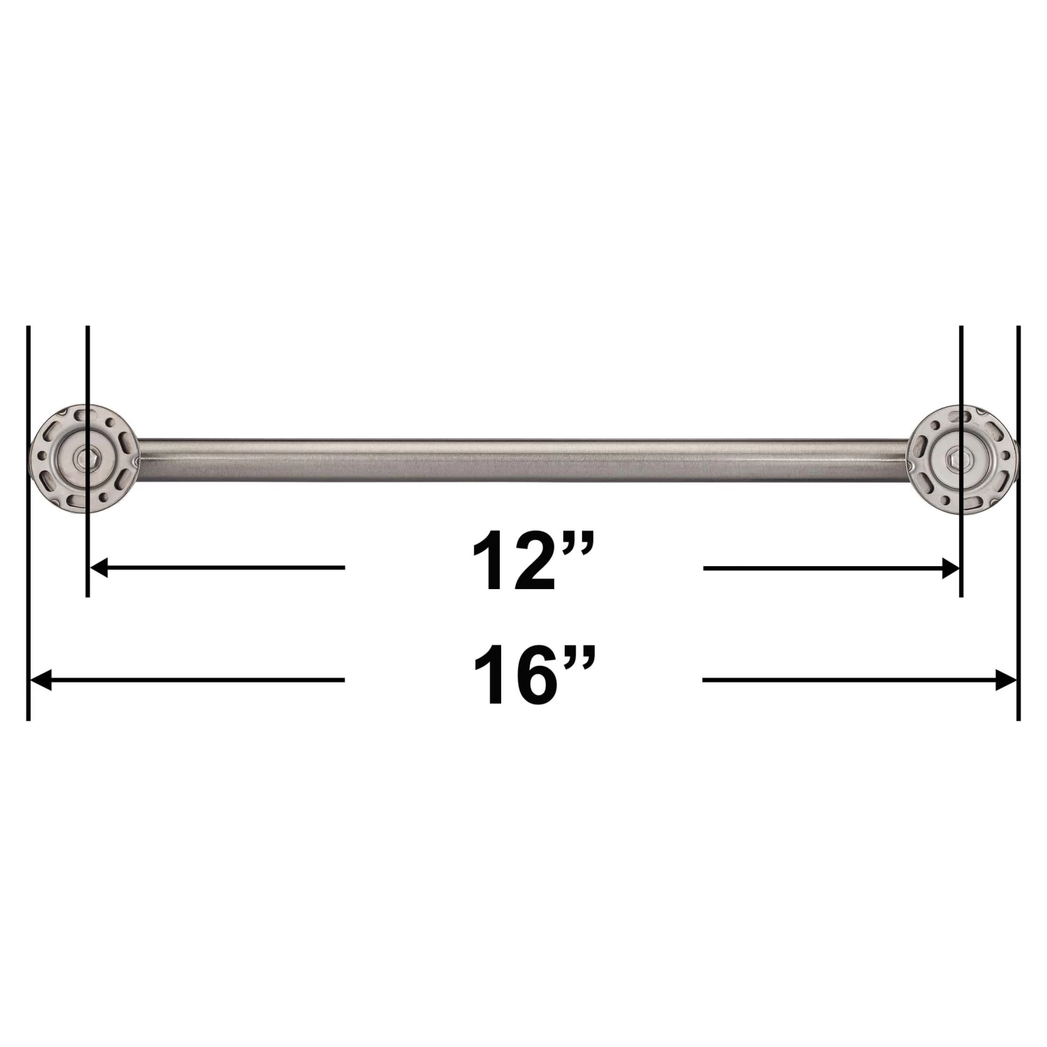 16 Inches Overall Length; 12 Inches Long Measured Center To Center Of Mounting Brackets; 1 1/4 Inch Diameter, 18 Gauge Tube; ADA Compliant When Properly Installed Into Wall Studs; Ships With Stainless Steel Mounting Bolts; Install Grab Bars In Minutes With Harney Hardware Grab Bar Mounting Brackets ( Product #71832 Sold Separately. Please Read Product Limitations Before Use.); Fabricated With Stainless Steel; Satin Stainless Steel Finish.
