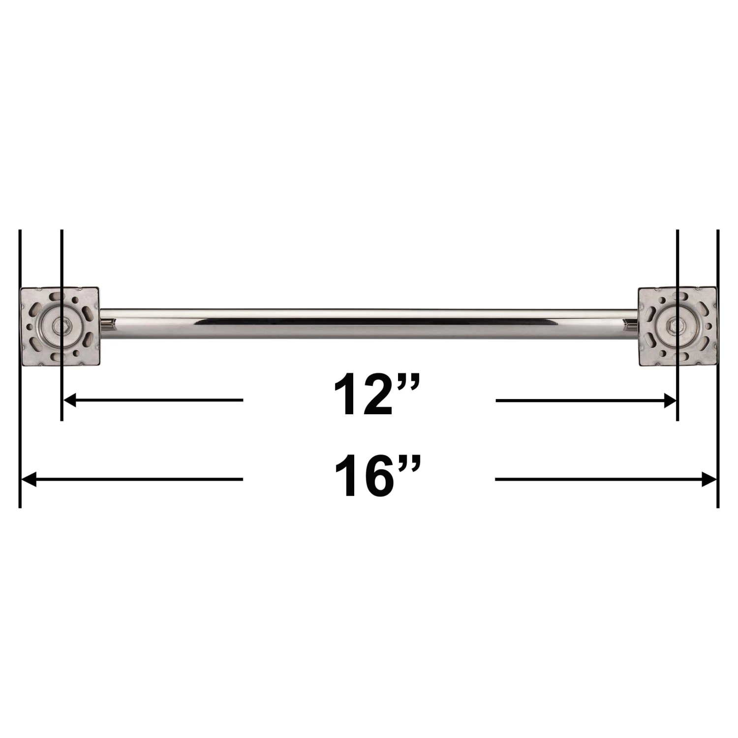 16 Inches Overall Length; 12 Inches Long Measured Center To Center Of Mounting Brackets; 1 1/4 Inch Diameter, 18 Gauge Tube; ADA Compliant When Properly Installed Into Wall Studs; Ships With Stainless Steel Mounting Bolts; Fabricated With Stainless Steel; Polished Stainless Steel Finish.