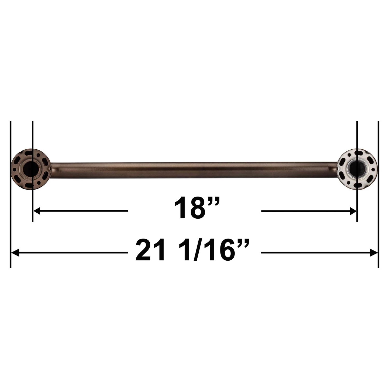 21 1/16 Inches Overall Length;18 Inches Long Measured Center To Center Of Mounting Brackets; 1 1/4 Inch Diameter, 18 Gauge Tube; ADA Compliant When Properly Installed Into Wall Studs; Ships With Stainless Steel Mounting Bolts; Install Grab Bars In Minutes With Harney Hardware Grab Bar Mounting Brackets ( Product #71833 Sold Separately. Please Read Product Limitations Before Use.); Fabricated With Stainless Steel; Powder Coated Bronze Finish.