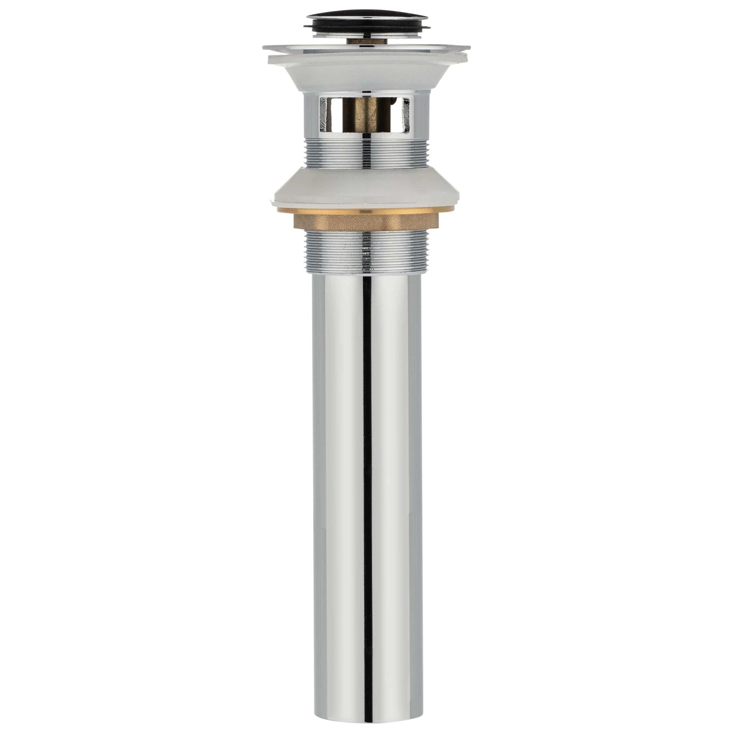Bathroom Sink Push Pop Up Drain Stopper; Press Drain Cap To Close And Open; Designed For Sinks With Built In Overflows; Designed For Sinks With 1 1/2 Inch Diameter Drains; Fabricated With Zinc Stopper And Flange With Brass Tailpiece; Chrome Finish.