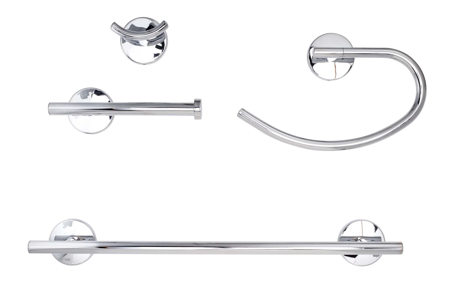 Set Consists Of Four Items That Are Purchased Individually; Set Contains: Robe Hook / Towel Hook, Toilet Paper Holder, 24 Inch Towel Bar, Towel Ring; Fabricated With Die Cast Zinc With Brass Or Stainless Steel Bars And Rings; Chrome Finish.