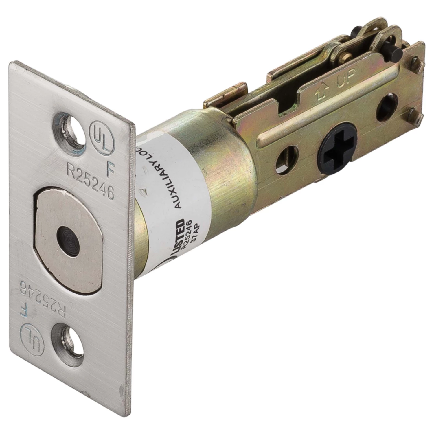 Optional UL Fire Rated Commercial Deadbolt Latch; Use With Commercial Deadbolts Installed On Doors With 2 3/8 Inch Backsets; Fabricated With Steel; Satin Stainless Steel Finish.
