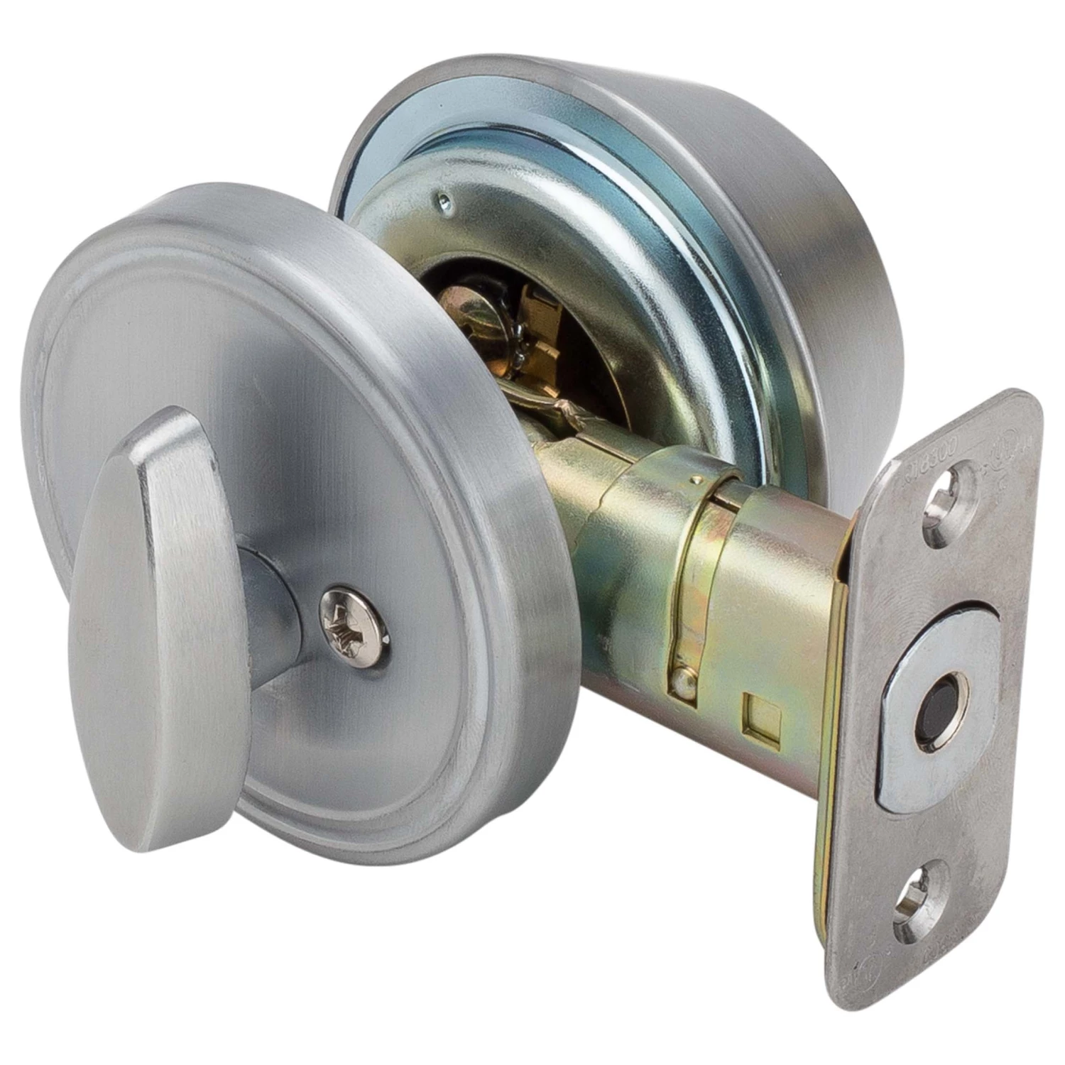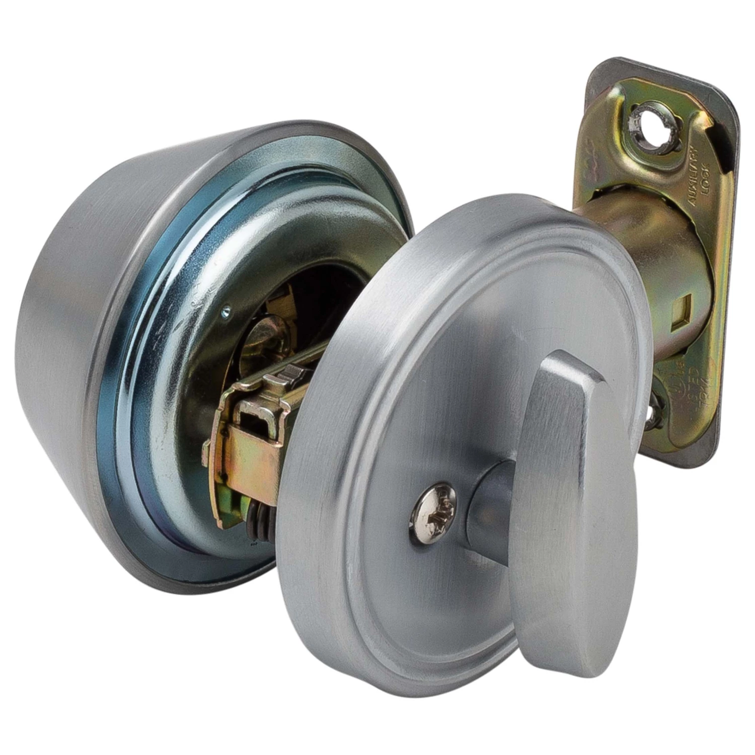ANSI Grade 2; ADA Compliant; UL 3 Hour Fire Rated; Schlage SC 1, 5-Pin Keyway, Adjustable Backset 2 3/8 Inches Or 2 3/4 Inches; Thumb Turn And Escutcheon Are Fabricated From Forged Brass; Locked Or Unlocked By Key Outside Or Thumb Turn Inside; 5-Year Mechanical And Finish Warranty; Fabricated With Brass Cover And Steel Mechanism; Satin Chrome Finish.
