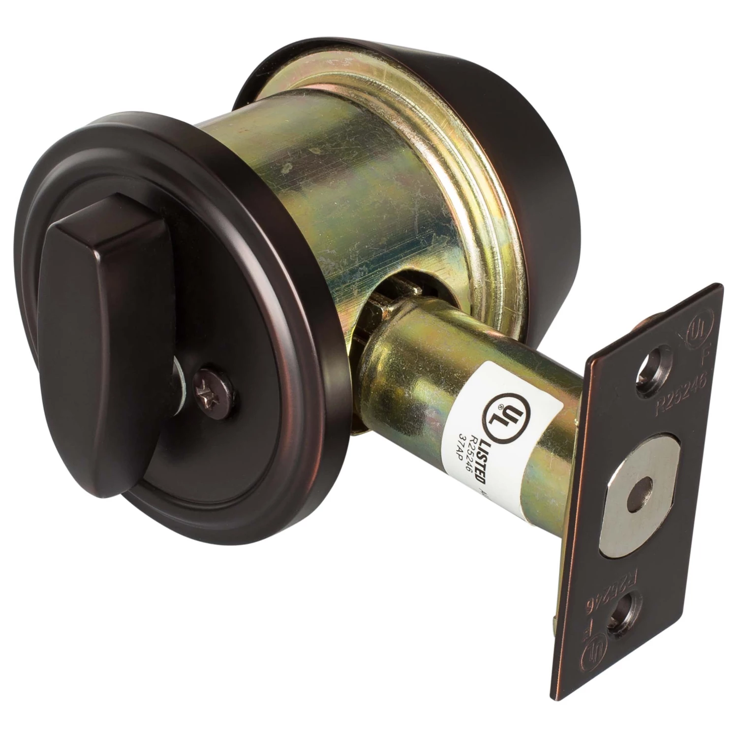 ANSI Grade 2; UL 3 Hour Fire Rated; Schlage SC4, 6-Pin Keyway; Meets ADA Requirements; Thumb Turn And Escutcheon Are Fabricated From Forged Brass; Locked Or Unlocked By Key Outside Or Thumb Turn Inside; Ships With A Fire Rated 2 3/4 Inch Backset Latch; 2 3/8 Inch Backset Latch (Product # CDLB60MM) Sold Separately; Fabricated With Stainless Steel Covers, Steel Internal Mechanism; Oil Rubbed Bronze Finish.