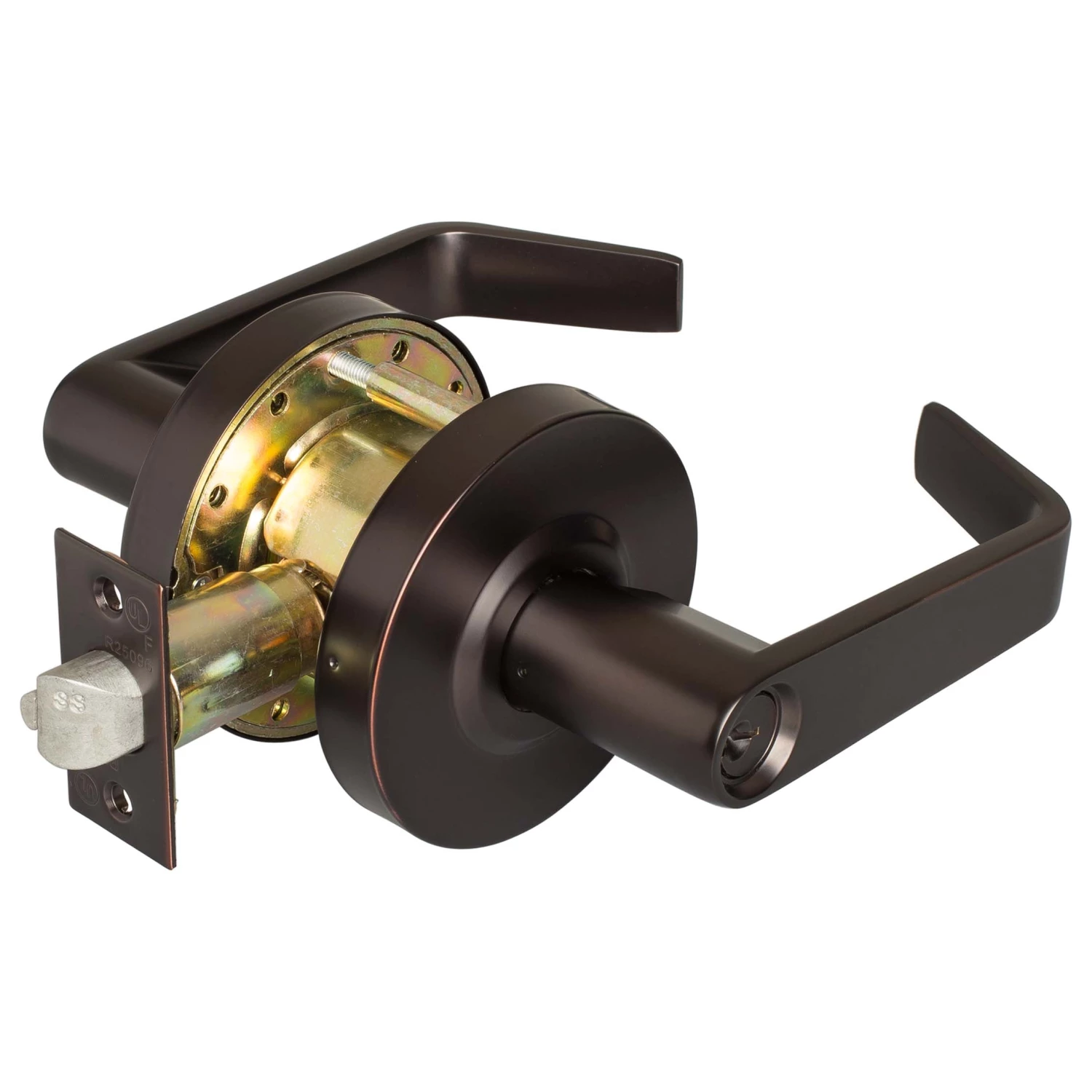 ANSI Grade 2; ADA Compliant; UL 3 Hour Fire Rated; Schlage SC4, 6-Pin Keyway; The Outside Lever Is Locked Or Unlocked By Key Inside Lever Is Always Unlocked Providing Emergency Exit; Full Length Lever Handle With 3/8 Inch Return; Ships With A Fire Rated 2 3/4 Inch Backset Latch; 2 3/8 Inch Backset Latch (Product # CLB60MM) Sold Separately; Fabricated With Die Cast Zinc Levers, Steel Internal Mechanism; Oil Rubbed Bronze Finish.