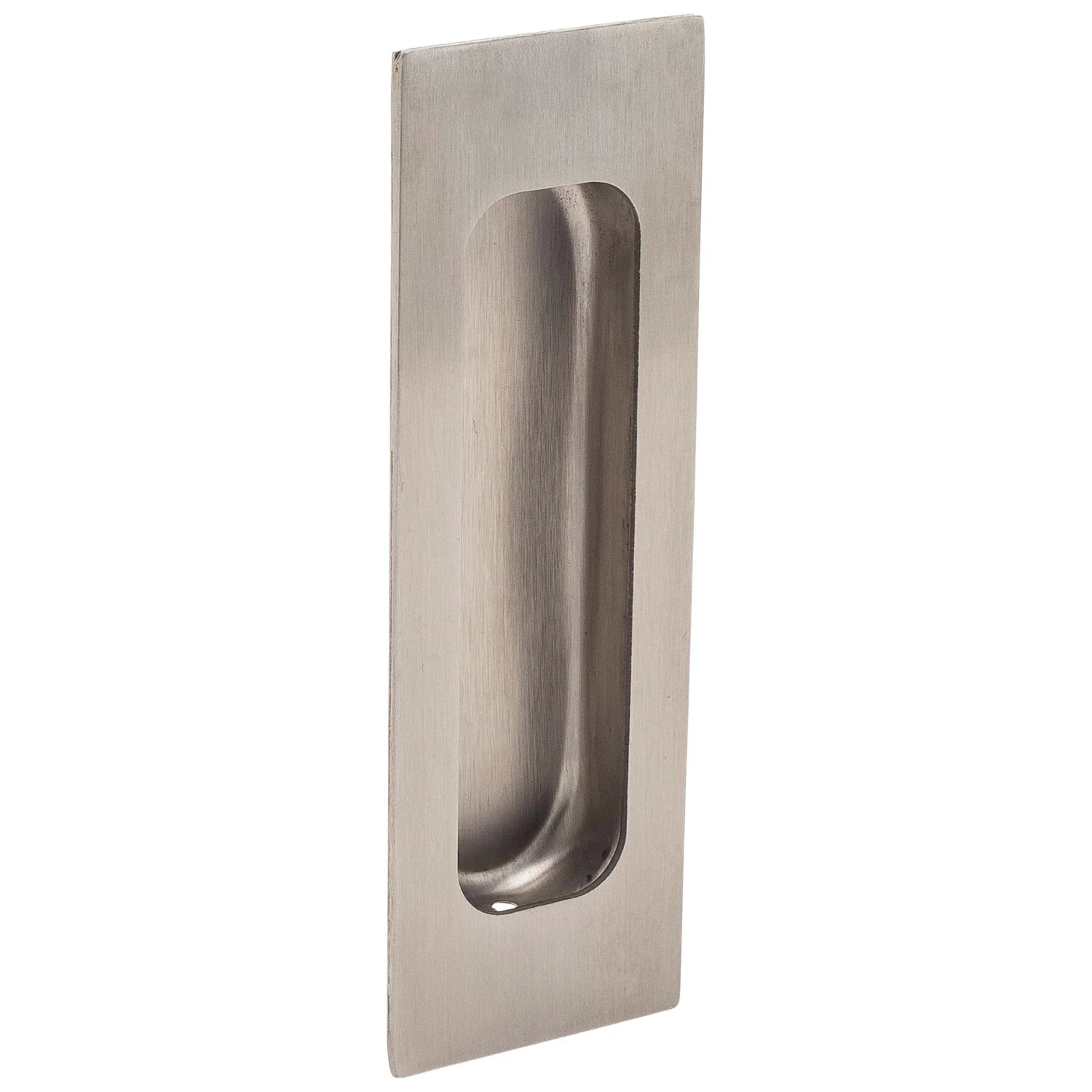 Recessed Rectangle Pull For Barn Doors; 4 3/4 Inches Long X 1 9/16 Inches Wide X 1/2 Inches Deep; Fabricated With Aluminum; Satin Nickel Finish.