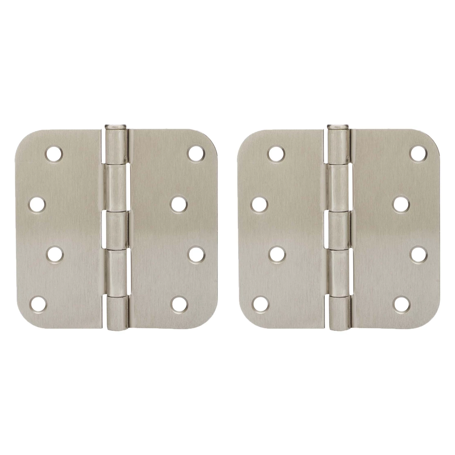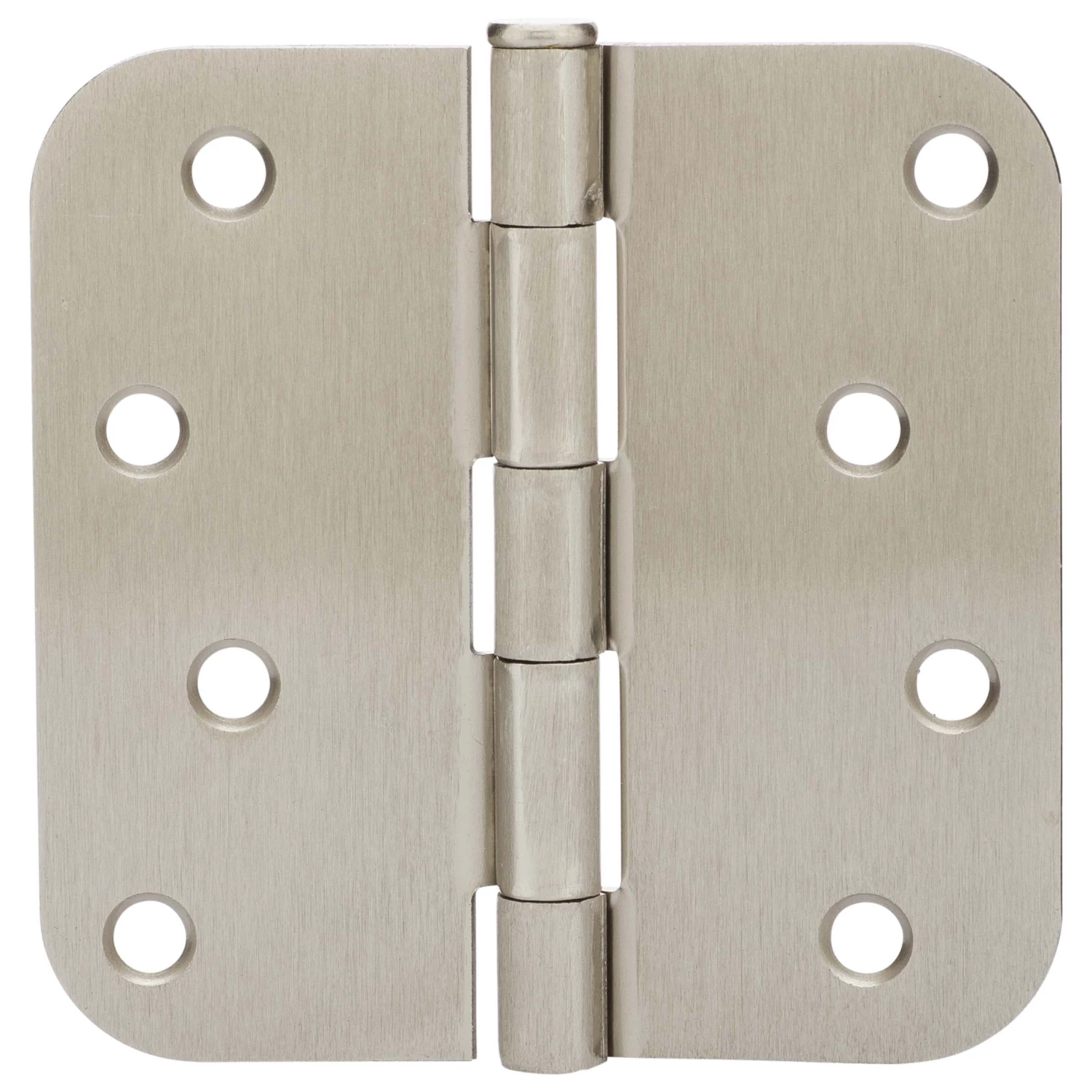 Two Plain Bearing Mortise Hinges Per Pack; 4 Inch X 4 X 5/8 Inch Radius Corners; 16 X 3/4 Inch Phillips Head Wood Screws Included; Fabricated With Steel; Satin Nickel Finish.