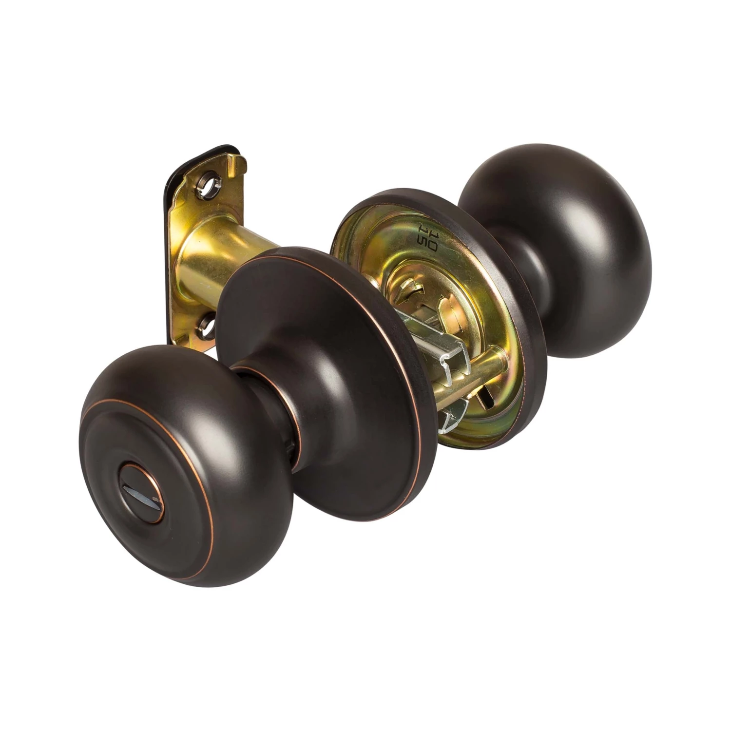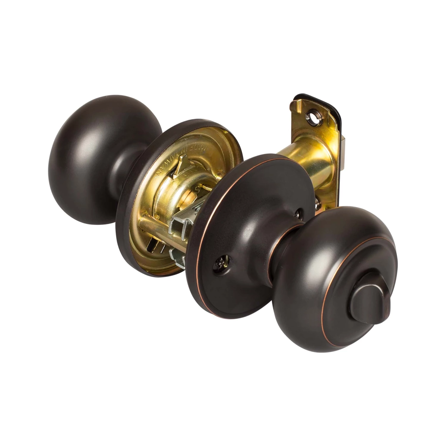 Traditional Style Privacy Function Door Knob Set; Thumbturn Latches And Opens Inside; Ships With Mortise Latch (Not Drive In); Latch Face 1 Inch X 2 1/4 Inches X 1/4 Inch Radius Corners; Optional Drive In Latch Available, 1 Inch Diameter, (Product Number # 87394); Optional UL Fire Rated Latch Available, (Product Number # 87372); Fits Doors 1 3/8 Inches To 1 3/4 Inches Thick; Fits Doors With Backsets 2 3/8 Inches Or 2 3/4 Inches; Fits Doors With A 2 1/8 Inch Cross Bore; 5-Year Mechanical And Finish Warranty; ANSI Grade 3; Fabricated With Brass Knob And Steel Mechanism; Venetian Bronze Finish.