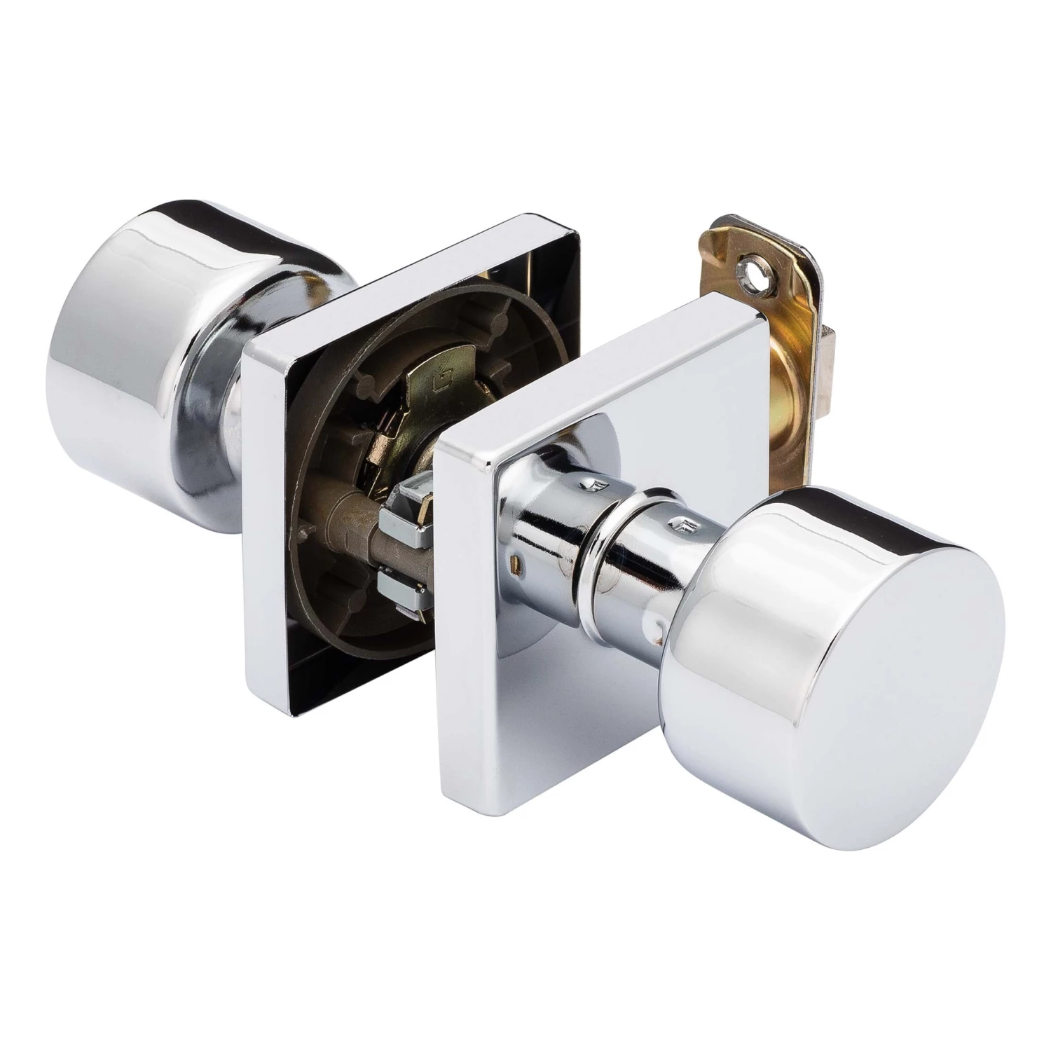 Contemporary Style Passage Function Door Knob Set; No Locking Mechanism, Both Inside And Outside Always Open Door; Ships With Mortise Latch (Not Drive In); Latch Face 1 Inch X 2 1/4 Inches X 1/4 Inch Radius Corners; Optional Drive In Latch Available, 1 Inch Diameter, (Product Number # 87398); Fits Doors 1 3/8 Inches To 1 3/4 Inches Thick; Fits Doors With Backsets 2 3/8 Inches Or 2 3/4 Inches; Fits Doors With A 2 1/8 Inch Cross Bore; 5-Year Mechanical And Finish Warranty; ANSI Grade 3; Fabricated With Brass Knob And Steel Mechanism; Chrome Finish.