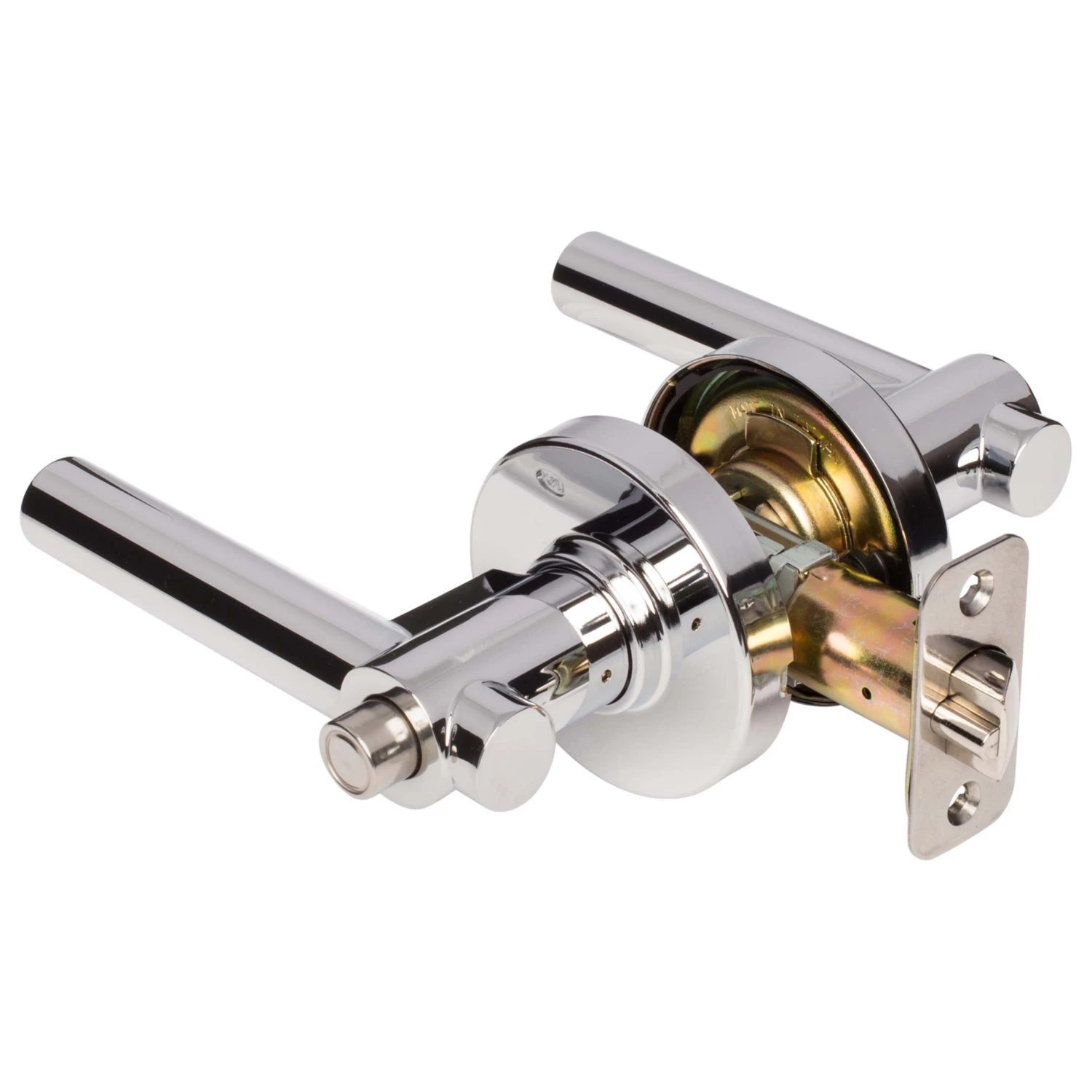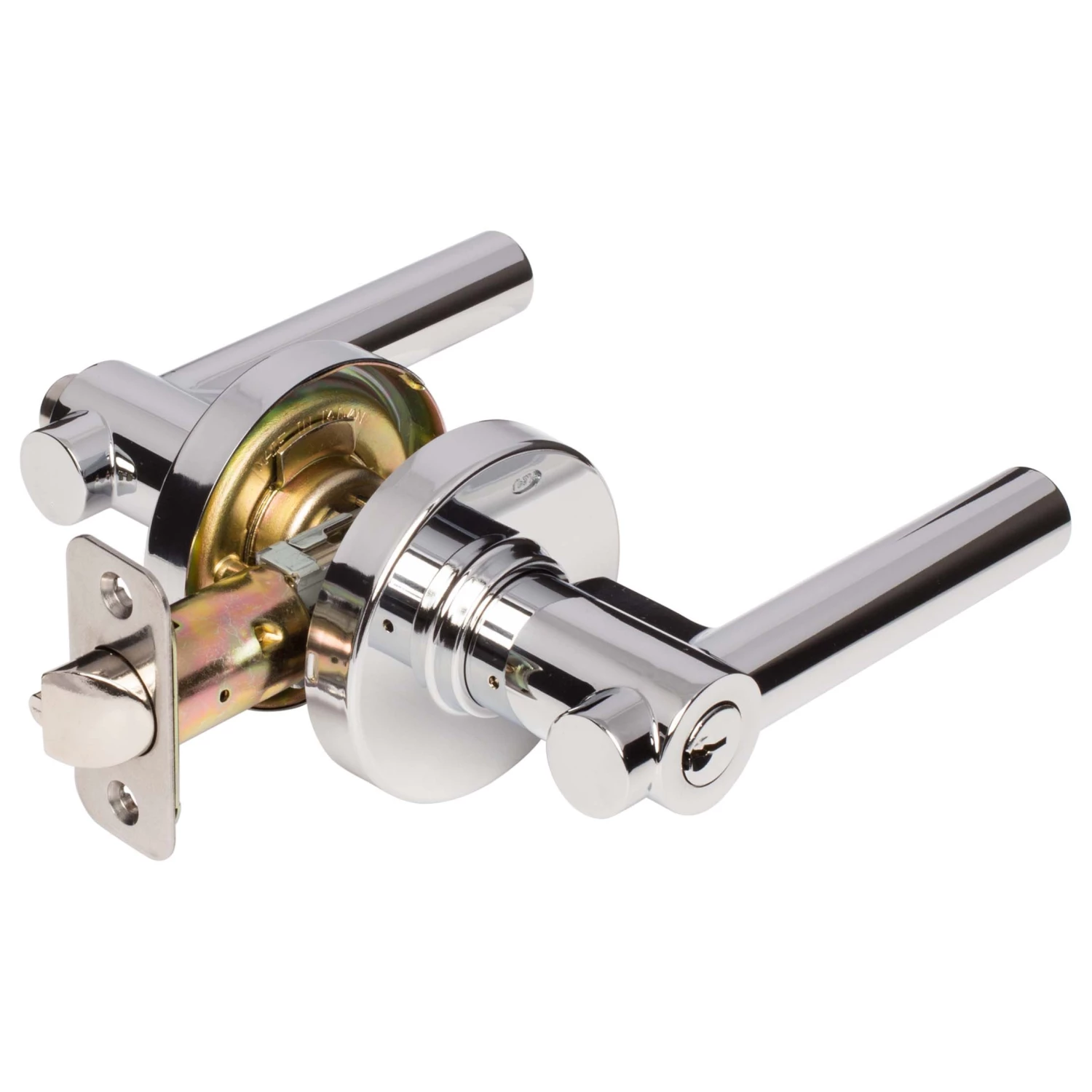 Contemporary Style Entry Function Door Lever Set; Key Opens Outside With Pushbutton Inside; Keying Alike And Master Keying Available; 5-Pin Tumbler Kwikset KW-1 Keyway; Ships With Mortise Latch (Not Drive In); Latch Face 1 Inch X 2 1/4 Inches X 1/4 Inch Radius Corners; Optional Drive In Latch Available, 1 Inch Diameter, (Product Number # 87397); Fits Doors 1 3/8 Inches To 1 3/4 Inches Thick; Fits Doors With Backsets 2 3/8 Inches Or 2 3/4 Inches; Fits Doors With A 2 1/8 Inch Cross Bore; 5-Year Mechanical And Finish Warranty; ANSI Grade 3; ADA Compliant; Fabricated With Die Cast Zinc Levers And Steel Mechanism; Chrome Finish.