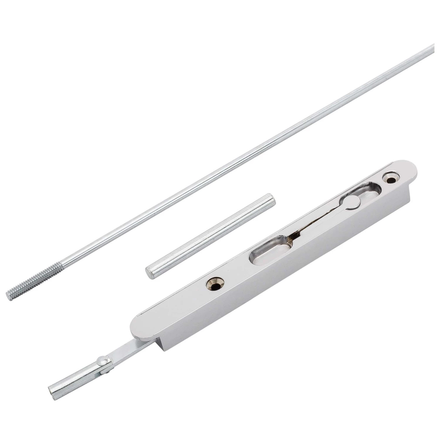 Lever Operated Cam Mechanism; Makes Bolt Throw And Retraction Much Easier Than Traditional Flush Bolts; Body 7 3/8 Inches Long X 3/4 Inch Wide; 16 Inch Extension Rod; Mounting Hardware: Two 1 1/2 Inch And Two 3/4 Inch Length Wood Screws And Matching Strike Plate Included; Fabricated With Die Cast Zinc; Chrome Finish.