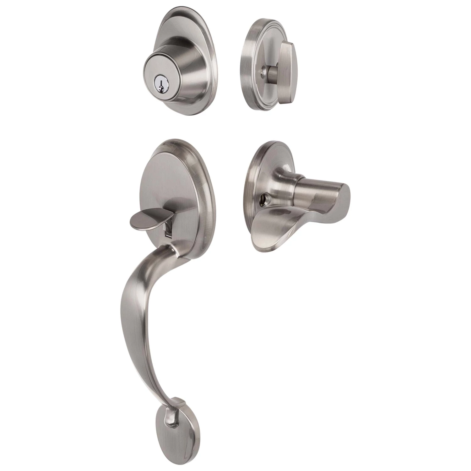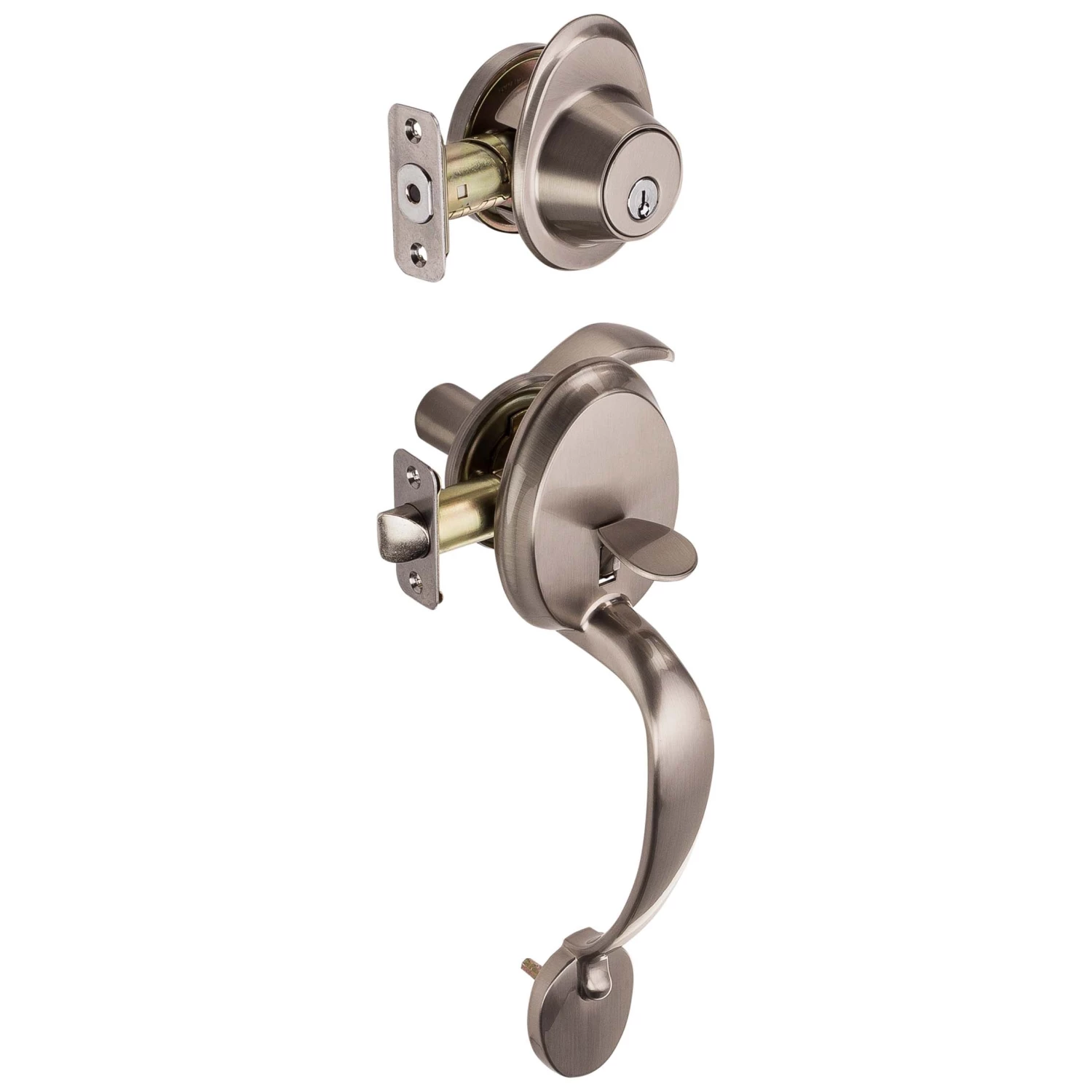 Traditional Style Handleset; Key Opens Outside With Inside Thumb Turn; Keying Alike And Master Keying Available; 5-Pin Tumbler Kwikset KW-1 Keyway; Ships With Mortise Latch (Not Drive In); Latch Face 1 Inch X 2 1/4 Inches X 1/4 Inch Radius Corners; Optional Drive In Latches Available, 1 Inch Diameter, (Product Number # 87396 And # 87394); Optional UL Fire Rated Latches Available, (Product Number # 87374 And # 87373); Fits Doors 1 3/8 Inches To 1 3/4 Inches Thick; Fits Doors With Backsets 2 3/8 Inches Or 2 3/4 Inches; Fits Doors With A 2 1/8 Inch Cross Bore; 5-Year Mechanical And Finish Warranty; ANSI Grade 3; Fabricated With Die Cast Zinc Handle And Lever And Steel Mechanism; Satin Nickel Finish.