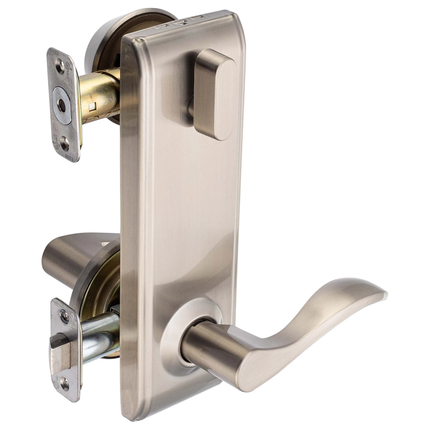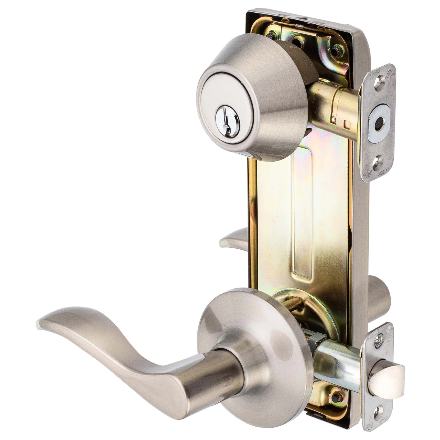 Interconnected Lock With Deadbolt And Left Hand Passage Lever; Single Action Functionality; Deadbolt Is Operated With A Key Outside And Thumb Turn Inside; Deadbolt And Passage Latches Are Simultaneously Retracted By Lever Operation; ANSI Grade 2; ADA Compliant; UL10C 3-Hour Fire Rated; Door Prep: Cross Bore 2 1/8 Inch, Edge Bore 1 1/8 Inch; Lever And Deadbolt Bores 5 1/2 Inches Center To Center; Door Thickness: Fits Doors 1 3/8 Inches to 1 3/4 Inches Thick; Faceplates: Radius Corners 1 1/8 Inches X 2 1/4 Inches; Strikeplates: Radius Corners, Full Lip, 2 3/4 Inches X 1 1/8 Inches; Backsets: Both Deadbolt and Passage Latches Adjustable 2 3/8 Inches to 2 3/4 Inches; Bolts: Lever 1/2 Inch Throw; Deadbolt 1 Inch Throw; Lock Cylinder: Kwikset Type KW1 5-Pin Cylinder; Levers Fabricated From Die Cast Zinc; Escutcheon Fabricated From Stainless Steel; Fabricated With Die Cast Zinc Levers And Steel Mechanism; Satin Nickel Finish.