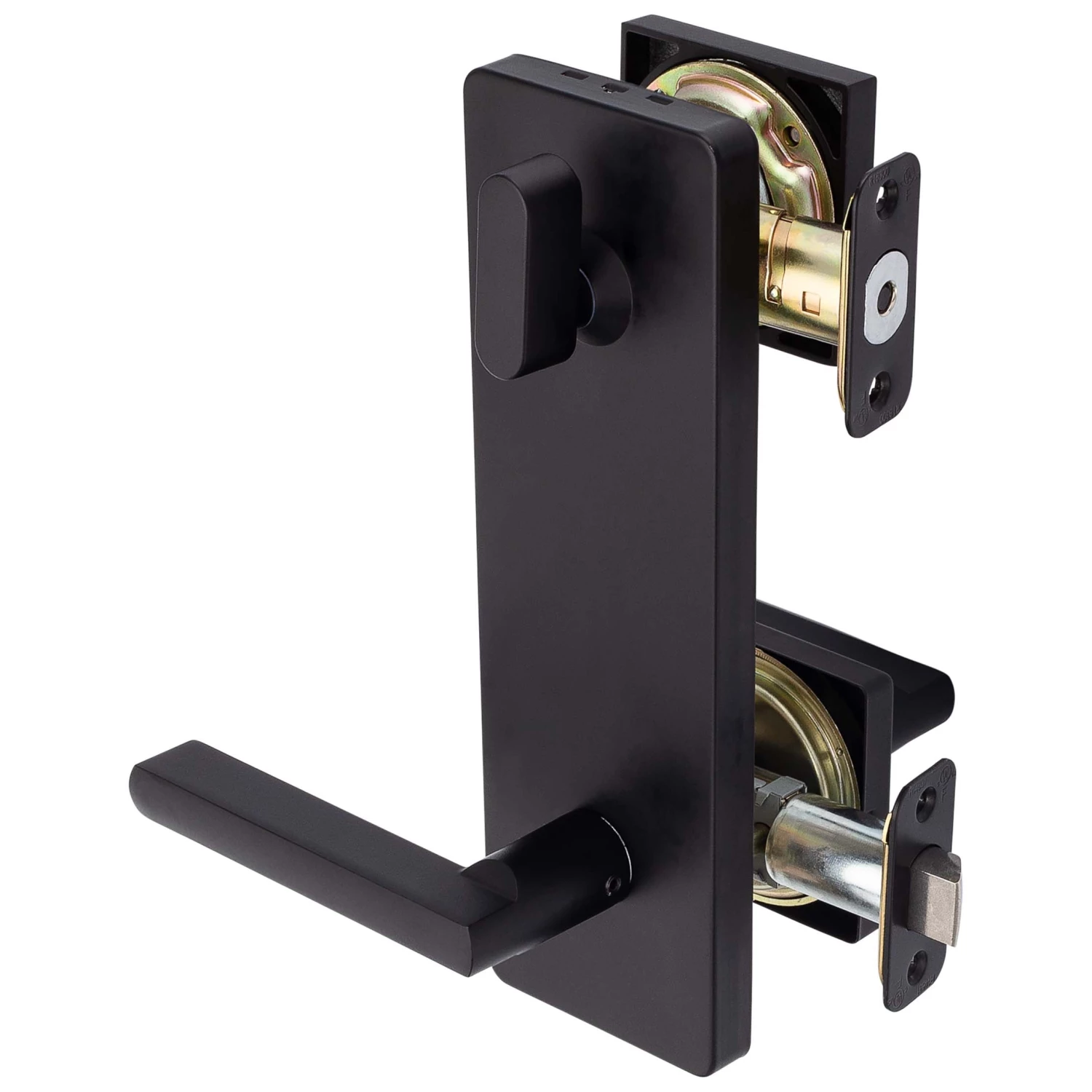 Interconnected Lock With Deadbolt And Reversible Passage Lever; Single Action Functionality; Deadbolt Is Operated With A Key Outside And Thumb Turn Inside; Deadbolt And Passage Latches Are Simultaneously Retracted By Lever Operation; ANSI Grade 2; ADA Compliant; UL10C 3-Hour Fire Rated; Door Prep: Cross Bore 2 1/8 Inch, Edge Bore 1 1/8 Inch; Lever And Deadbolt Bores 5 1/2 Inches Center To Center; Door Thickness: Fits Doors 1 3/8 Inches to 1 3/4 Inches Thick; Faceplates: Radius Corners 1 1/8 Inches X 2 1/4 Inches; Strikeplates: Radius Corners, Full Lip, 2 3/4 Inches X 1 1/8 Inches; Backsets: Both Deadbolt and Passage Latches Adjustable 2 3/8 Inches to 2 3/4 Inches; Bolts: Lever 1/2 Inch Throw; Deadbolt 1 Inch Throw; Lock Cylinder: Kwikset Type KW1 5-Pin Cylinder; Levers Fabricated From Die Cast Zinc; Escutcheon Fabricated From Stainless Steel; Fabricated With Die Cast Zinc Levers And Steel Mechanism; Matte Black Finish.