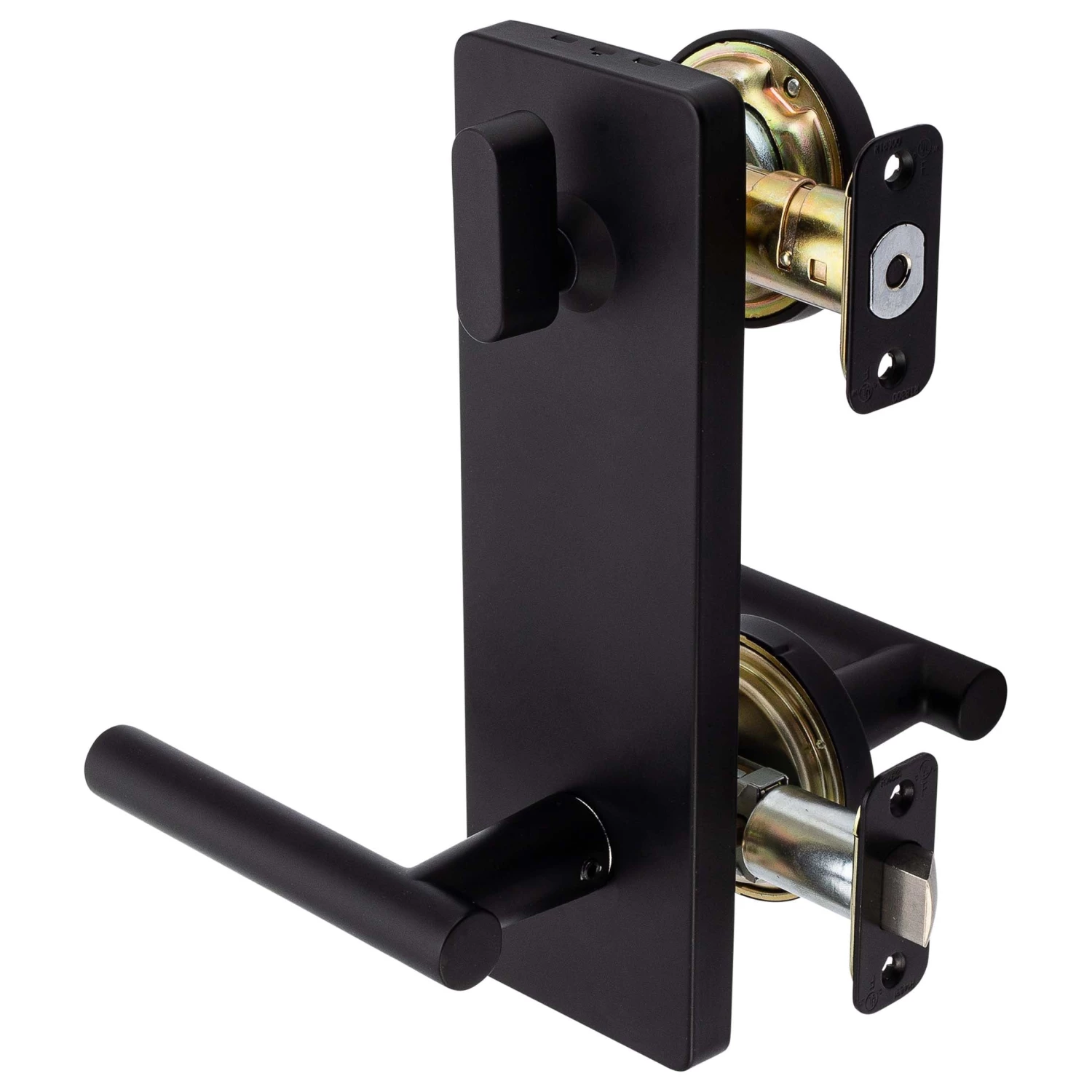 Interconnected Lock With Deadbolt And Reversible Passage Lever; Single Action Functionality; Deadbolt Is Operated With A Key Outside And Thumb Turn Inside; Deadbolt And Passage Latches Are Simultaneously Retracted By Lever Operation; ANSI Grade 2; ADA Compliant; UL10C 3-Hour Fire Rated; Door Prep: Cross Bore 2 1/8 Inch, Edge Bore 1 1/8 Inch; Lever And Deadbolt Bores 5 1/2 Inches Center To Center; Door Thickness: Fits Doors 1 3/8 Inches to 1 3/4 Inches Thick; Faceplates: Radius Corners 1 1/8 Inches X 2 1/4 Inches; Strikeplates: Radius Corners, Full Lip, 2 3/4 Inches X 1 1/8 Inches; Backsets: Both Deadbolt and Passage Latches Adjustable 2 3/8 Inches to 2 3/4 Inches; Bolts: Lever 1/2 Inch Throw; Deadbolt 1 Inch Throw; Lock Cylinder: Kwikset Type KW1 5-Pin Cylinder; Levers Fabricated From Die Cast Zinc; Escutcheon Fabricated From Stainless Steel; Fabricated With Die Cast Zinc Levers And Steel Mechanism; Matte Black Finish.