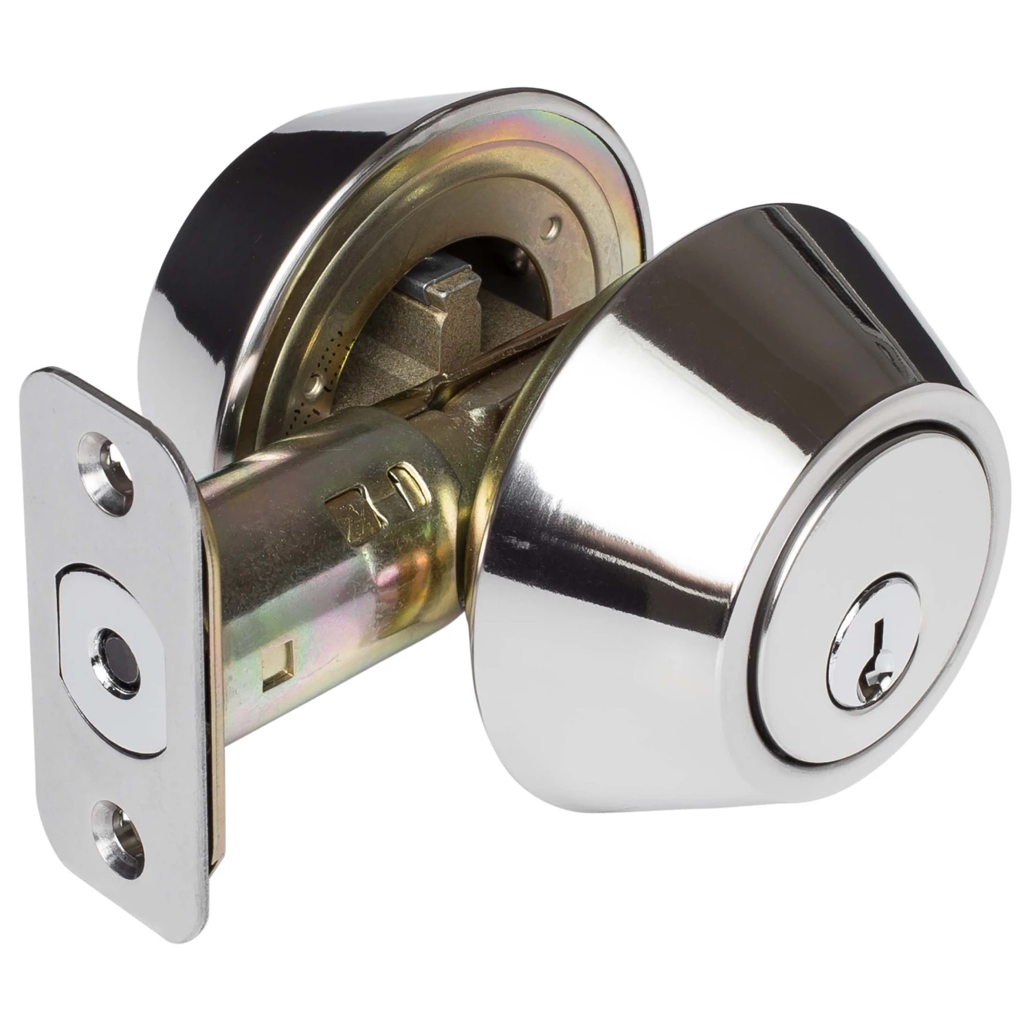 Traditional Style Double Cylinder Deadbolt; Key Opens Both Outside And Inside; Keying Alike And Master Keying Available; 5-Pin Tumbler Kwikset KW-1 Keyway; Ships With Mortise Latch (Not Drive In); Latch Face 1 Inch X 2 1/4 Inches X 1/4 Inch Radius Corners; Optional Drive In Latch Available, 1 Inch Diameter, (Product Number # 87396); Optional UL Fire Rated Latch Available, (Product Number # 87374); Fits Doors 1 3/8 Inches To 1 3/4 Inches Thick; Fits Doors With Backsets 2 3/8 Inches Or 2 3/4 Inches; Fits Doors With A 2 1/8 Inch Cross Bore; 5-Year Mechanical And Finish Warranty; ANSI Grade 3; Fabricated With Brass Cover And Steel Mechanism; Chrome Finish.