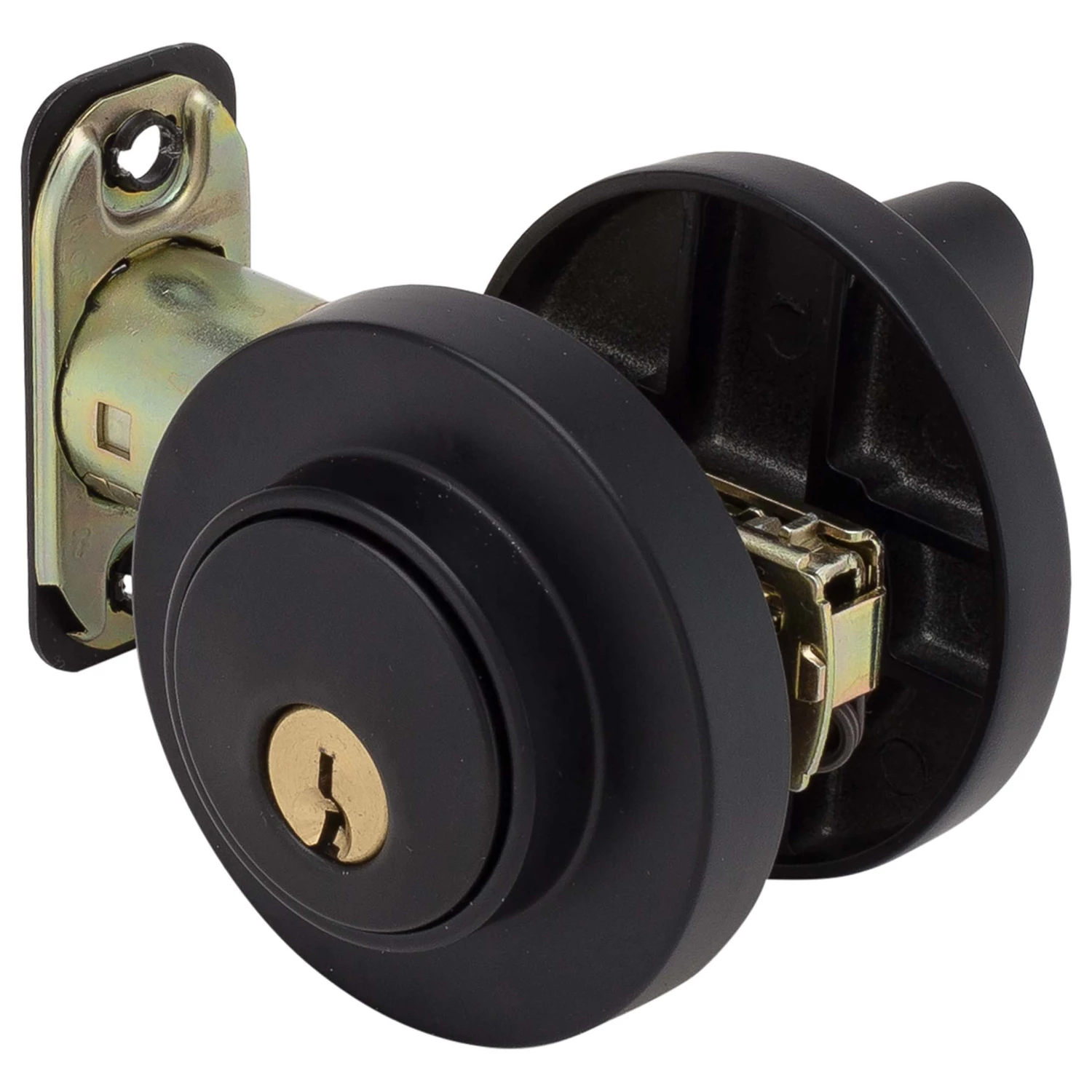 Harney Hardware Keyed Single Cylinder Contemporary Deadbolt, Round Escutcheon Residential Door Locks