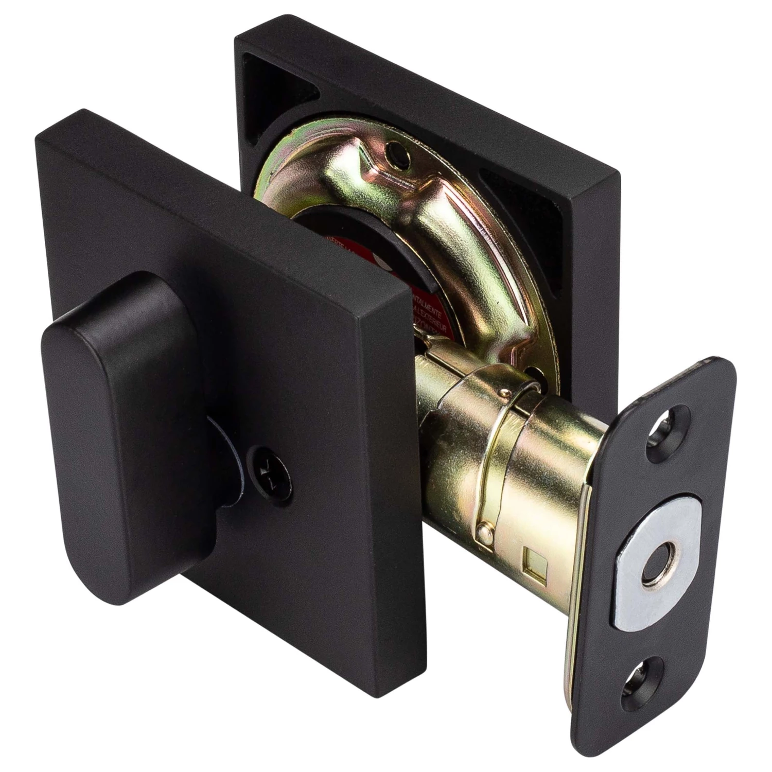 Contemporary Style Single Cylinder Deadbolt; Key Opens Outside With Inside Thumb Turn; Keying Alike And Master Keying Available; 5-Pin Tumbler Kwikset KW-1 Keyway; Ships With Mortise Latch (Not Drive In); Latch Face 1 Inch X 2 1/4 Inches X 1/4 Inch Radius Corners; Optional Drive In Latch Available, 1 Inch Diameter, (Product Number # 87396); Optional UL Fire Rated Latch Available, (Product Number # 87375); Fits Doors 1 3/8 Inches To 1 3/4 Inches Thick; Fits Doors With Backsets 2 3/8 Inches Or 2 3/4 Inches; Fits Doors With A 2 1/8 Inch Cross Bore; 5-Year Mechanical And Finish Warranty; ANSI Grade 3; Fabricated With Brass Cover And Steel Mechanism; Matte Black Finish.
