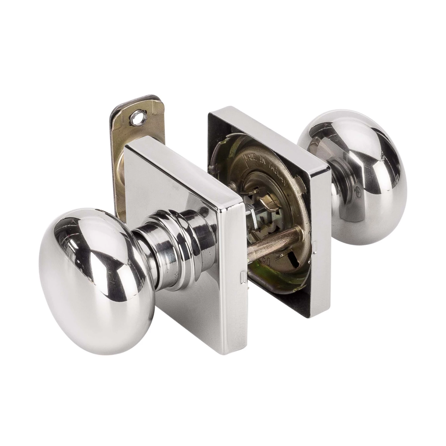 Transitional Style Passage Function Door Knob Set; No Locking Mechanism, Both Inside And Outside Always Open Door; Ships With Mortise Latch (Not Drive In); Latch Face 1 Inch X 2 1/4 Inches X 1/4 Inch Radius Corners; Optional Drive In Latch Available, 1 Inch Diameter, (Product Number # 87394); Optional UL Fire Rated Latch Available, (Product Number # 87373); Fits Doors 1 3/8 Inches To 1 3/4 Inches Thick; Fits Doors With Backsets 2 3/8 Inches Or 2 3/4 Inches; Fits Doors With A 2 1/8 Inch Cross Bore; 5-Year Mechanical And Finish Warranty; ANSI Grade 3; Fabricated With Brass Knob And Steel Mechanism; Chrome Finish.