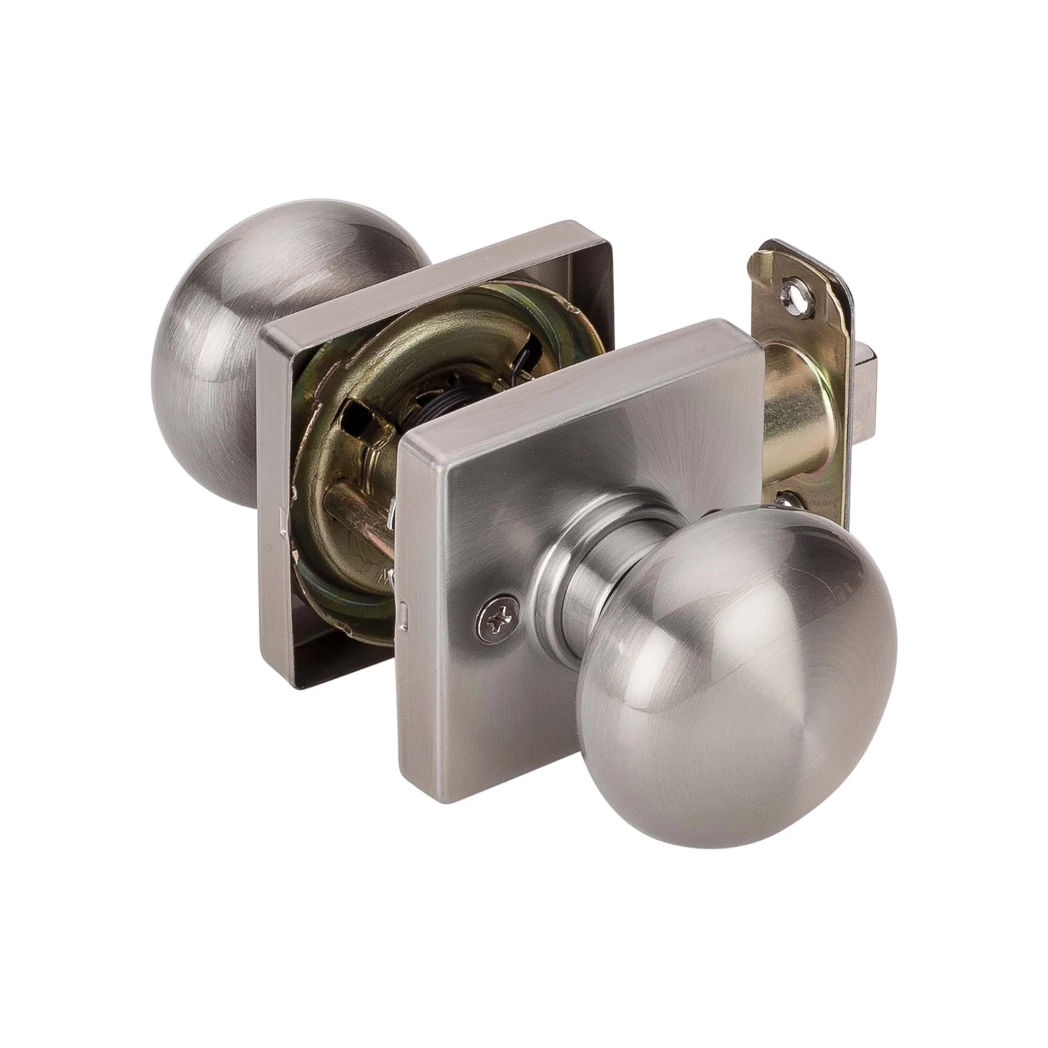 Transitional Style Passage Function Door Knob Set; No Locking Mechanism, Both Inside And Outside Always Open Door; Ships With Mortise Latch (Not Drive In); Latch Face 1 Inch X 2 1/4 Inches X 1/4 Inch Radius Corners; Optional Drive In Latch Available, 1 Inch Diameter, (Product Number # 87394); Optional UL Fire Rated Latch Available, (Product Number # 87373); Fits Doors 1 3/8 Inches To 1 3/4 Inches Thick; Fits Doors With Backsets 2 3/8 Inches Or 2 3/4 Inches; Fits Doors With A 2 1/8 Inch Cross Bore; 5-Year Mechanical And Finish Warranty; ANSI Grade 3; Fabricated With Brass Knob And Steel Mechanism; Satin Nickel Finish.