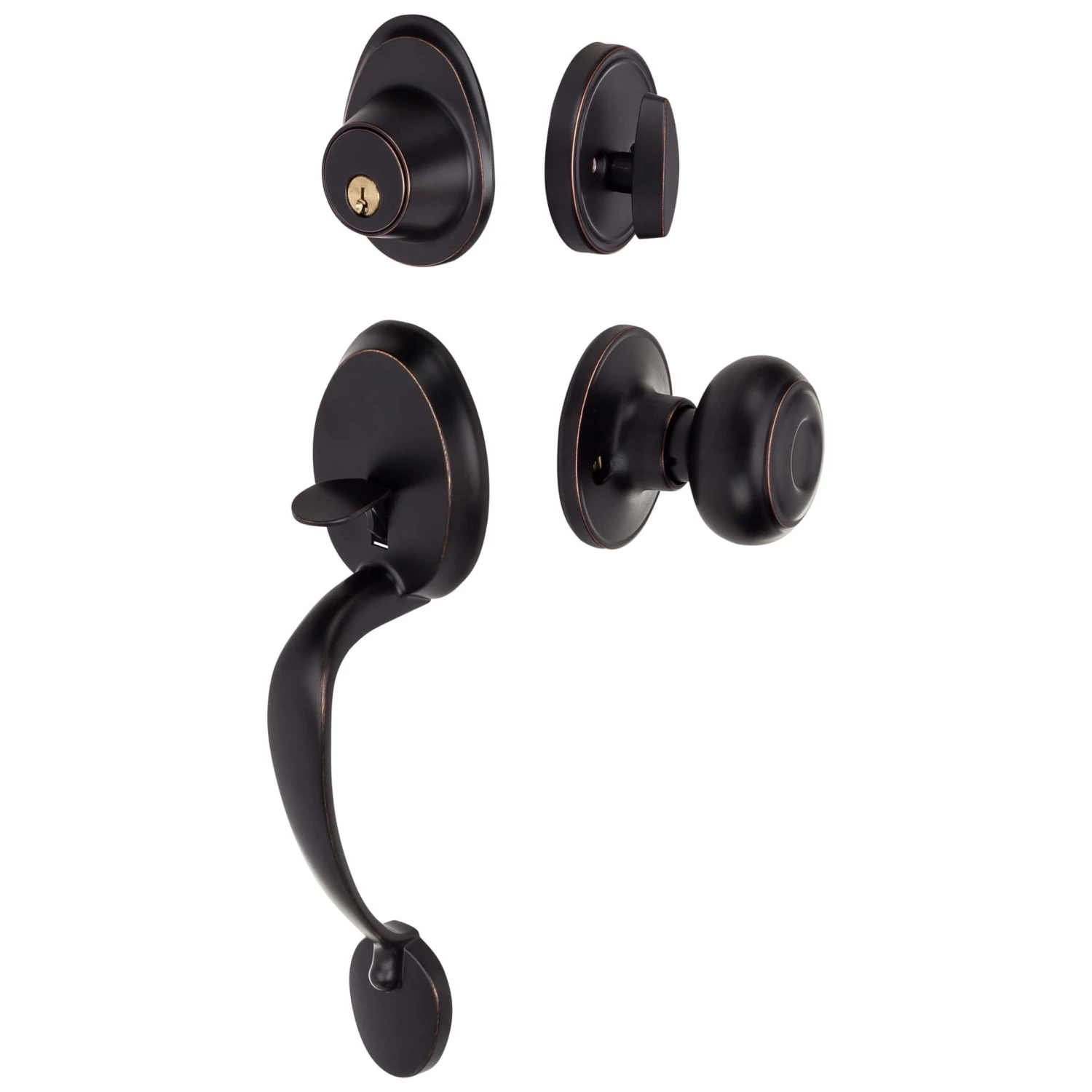 Traditional Style Handleset; Key Opens Outside With Inside Thumb Turn; Keying Alike And Master Keying Available; 5-Pin Tumbler Kwikset KW-1 Keyway; Ships With Mortise Latch (Not Drive In); Latch Face 1 Inch X 2 1/4 Inches X 1/4 Inch Radius Corners; Optional Drive In Latches Available, 1 Inch Diameter, (Product Number # 87396 And # 87394); Optional UL Fire Rated Latches Available, (Product Number # 87375 And # 87372); Fits Doors 1 3/8 Inches To 1 3/4 Inches Thick; Fits Doors With Backsets 2 3/8 Inches Or 2 3/4 Inches; Fits Doors With A 2 1/8 Inch Cross Bore; 5-Year Mechanical And Finish Warranty; ANSI Grade 3; Fabricated With Die Cast Zinc Handle, Brass Knob, and Steel Mechanism; Venetian Bronze Finish.