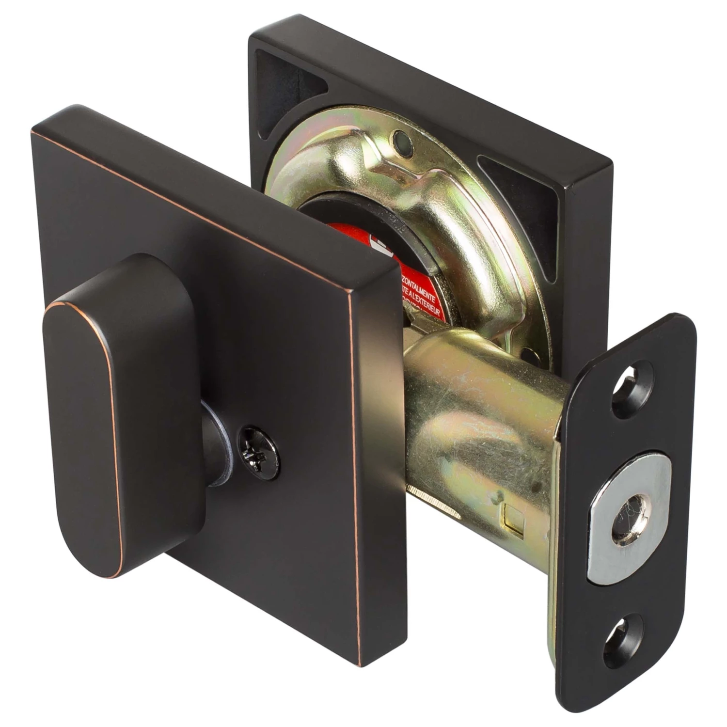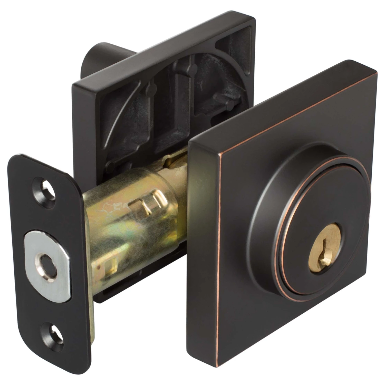 Harney Hardware Residential Door Locks Keyed Single Cylinder Contemporary Deadbolt, Square Escutcheon
