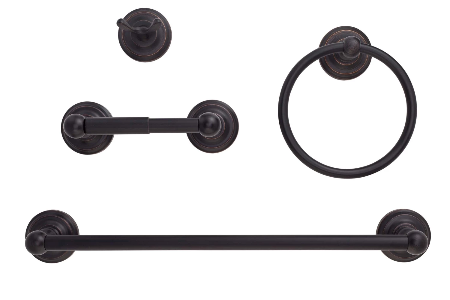 Set Consists Of Four Items That Are Purchased Individually; Set Contains: Robe Hook / Towel Hook, Toilet Paper Holder, 24 Inch Towel Bar, Towel Ring; Fabricated With Die Cast Zinc With Brass Or Stainless Steel Bars And Rings; Venetian Bronze Finish.