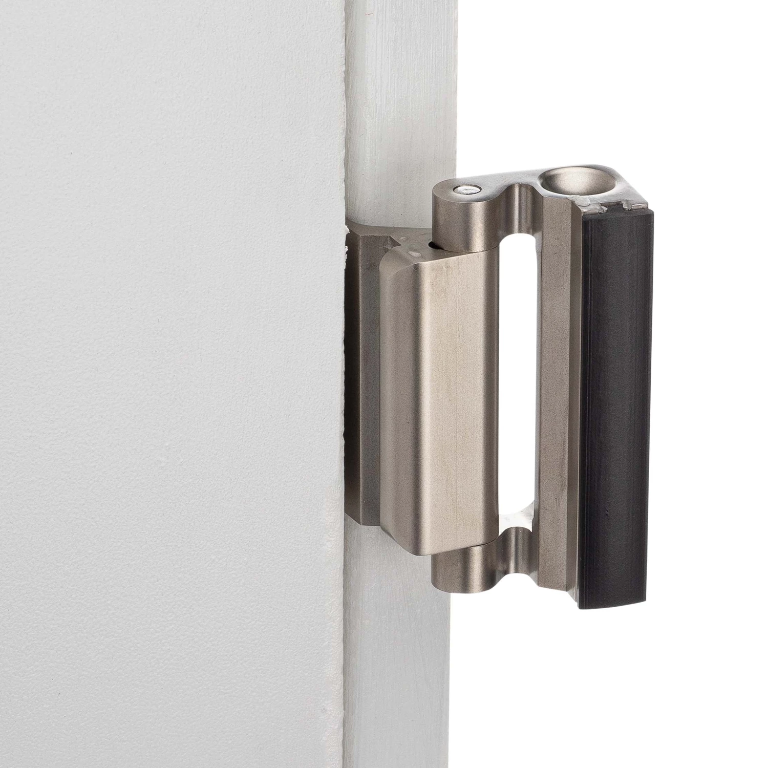 Heavy Duty Security Door Guard; Designed For Installation On Wood Frame Doors; Adds Additional Security To Any Door In Your Home; Heavy-Duty Construction For Reliable Performance; 4 X 3 In. And 3 X 3/4 In. Wood Screws Included; Fabricated With Extruded Aluminum; Satin Nickel Finish.