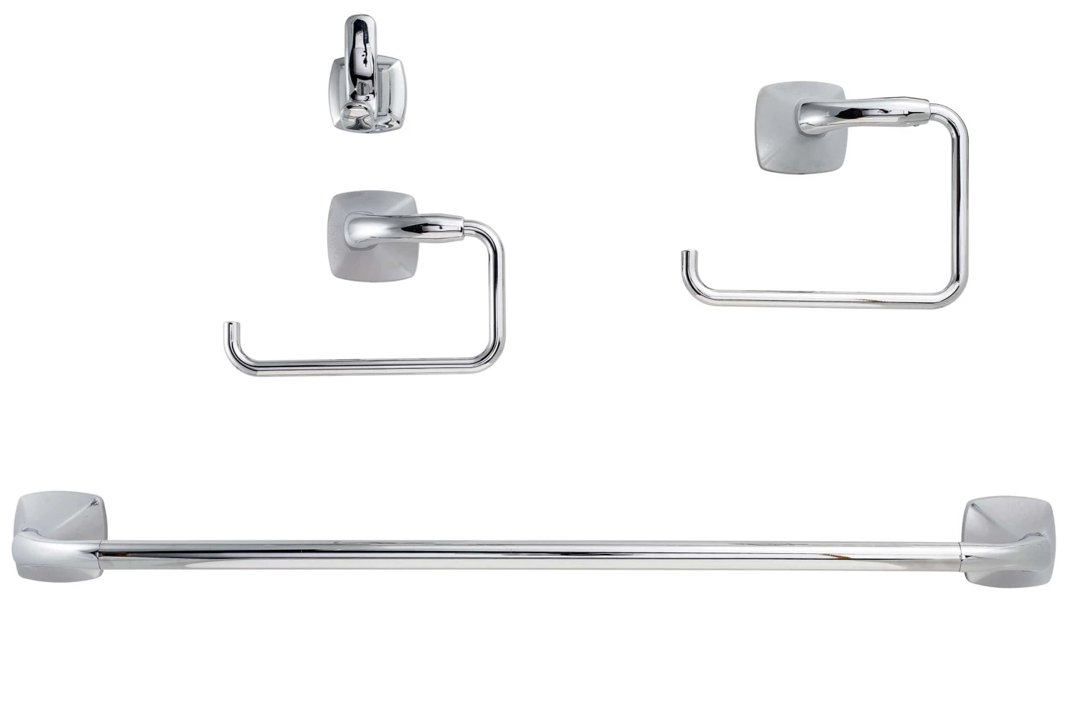 Set Consists Of Four Items That Are Purchased Individually; Set Contains: Robe Hook / Towel Hook, Toilet Paper Holder, 24 Inch Towel Bar, Towel Ring; Fabricated With Die Cast Zinc With Brass Or Stainless Steel Bars And Rings; Chrome Finish.